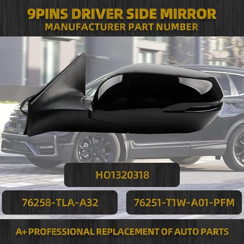 [Function] Manual Folding, Power Adjustment on Glass, With Heated, With LED Turn Signal Light, With Blind Spot Detection BSD, Paint to Match Black Cover, 9 Pins Connector, Driver Left LH Side