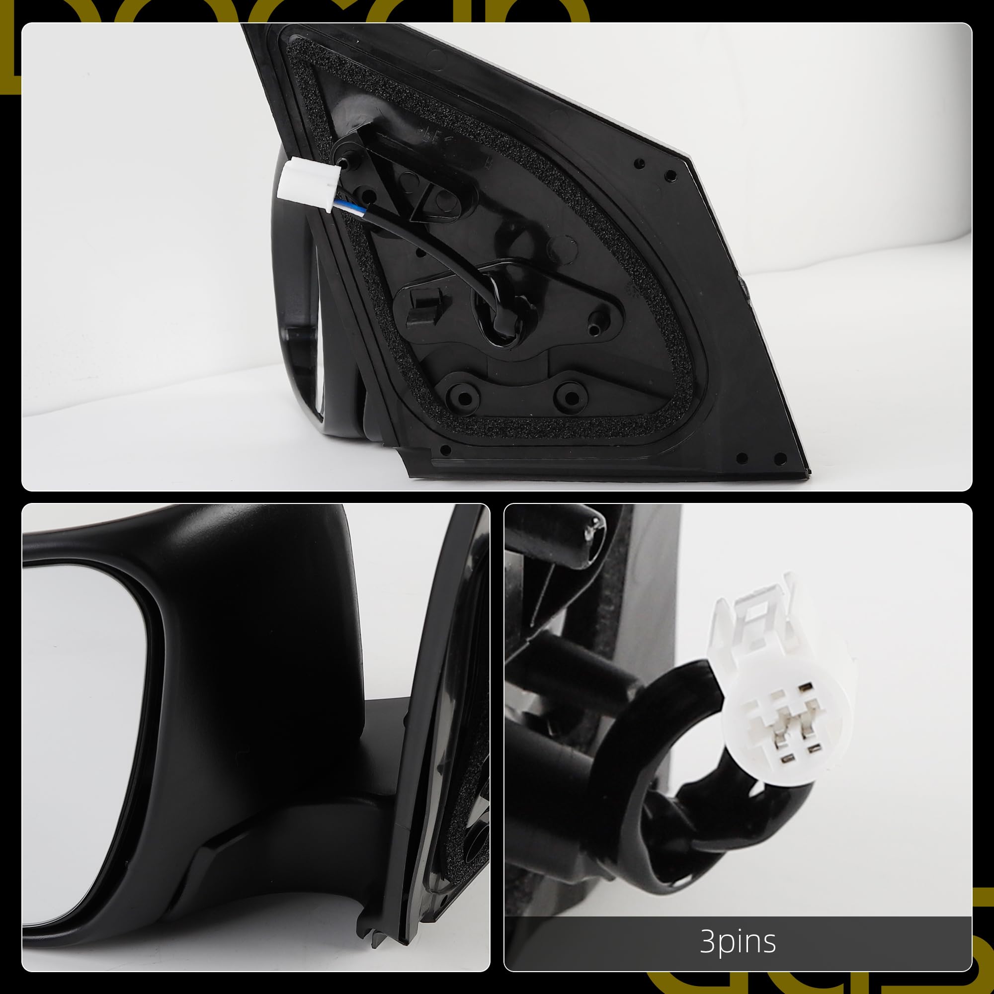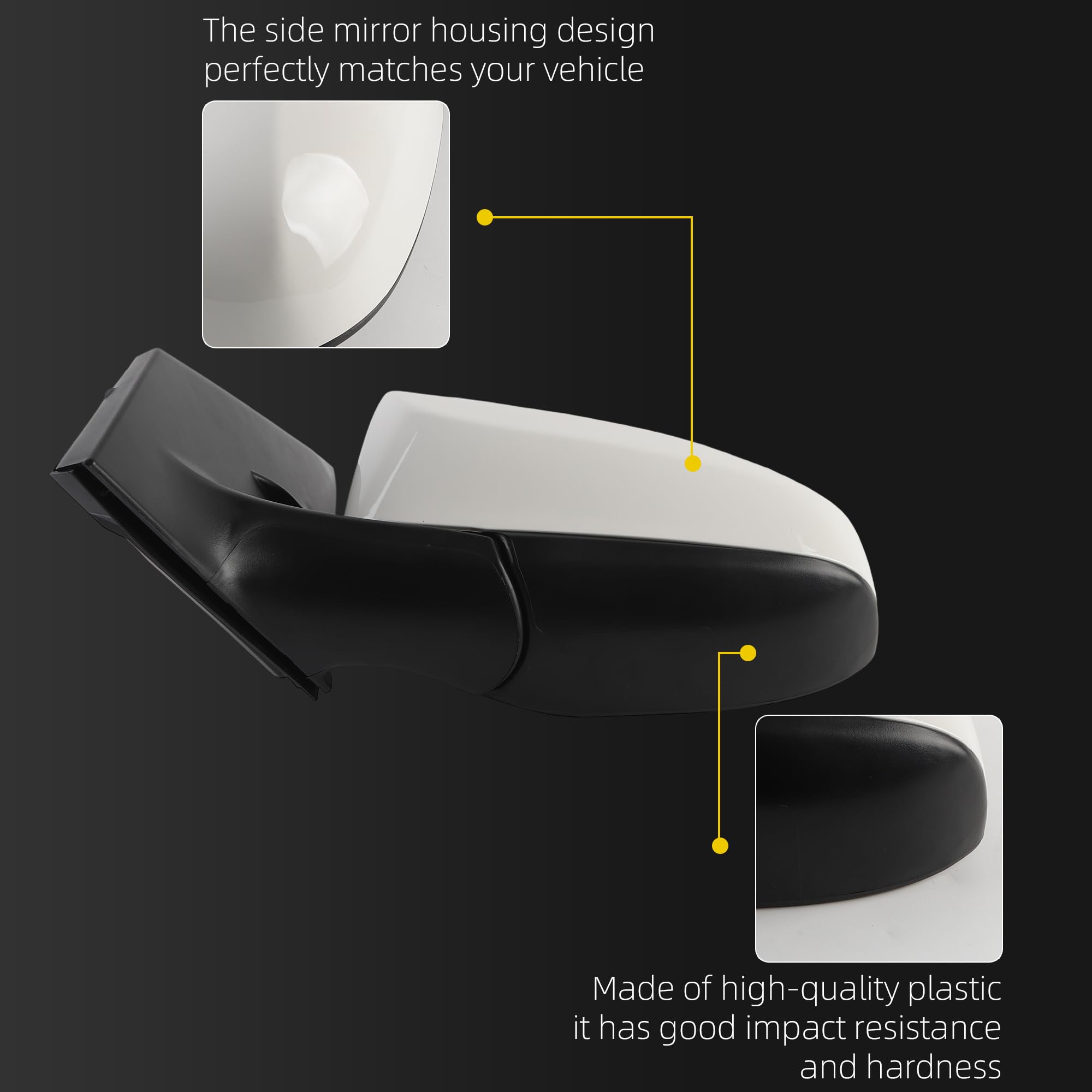 [Specifications] Position: Front Left Driver Side; Color: White ( Paint to Match ) ; Plug Configuration: 3 Wires/Pins; Fuction: Manual Folding, Power Adjustment.