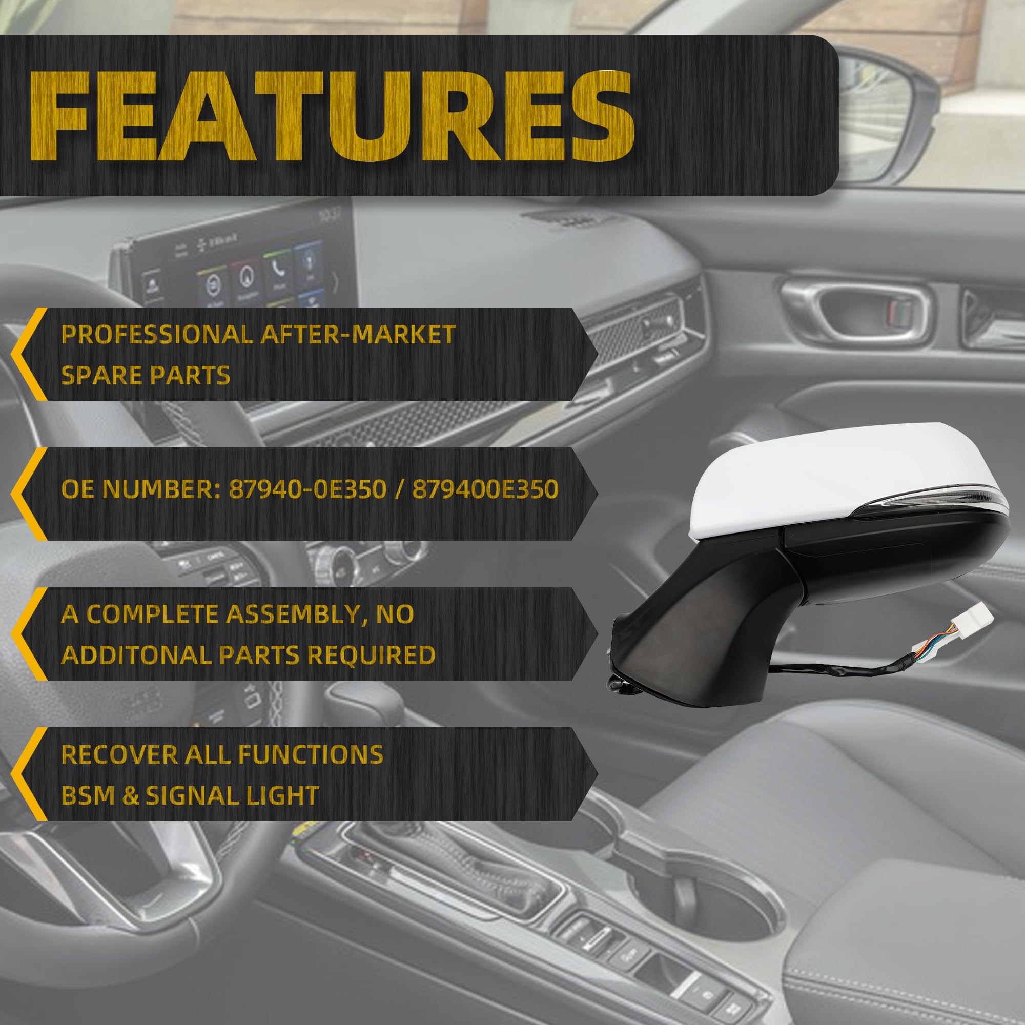 【Part Number】The Part Number of Door Mirror Assembly is 87940-0E350, 879400E350. Please Confirm Your Vehicle Model And Part Number Before Purchase