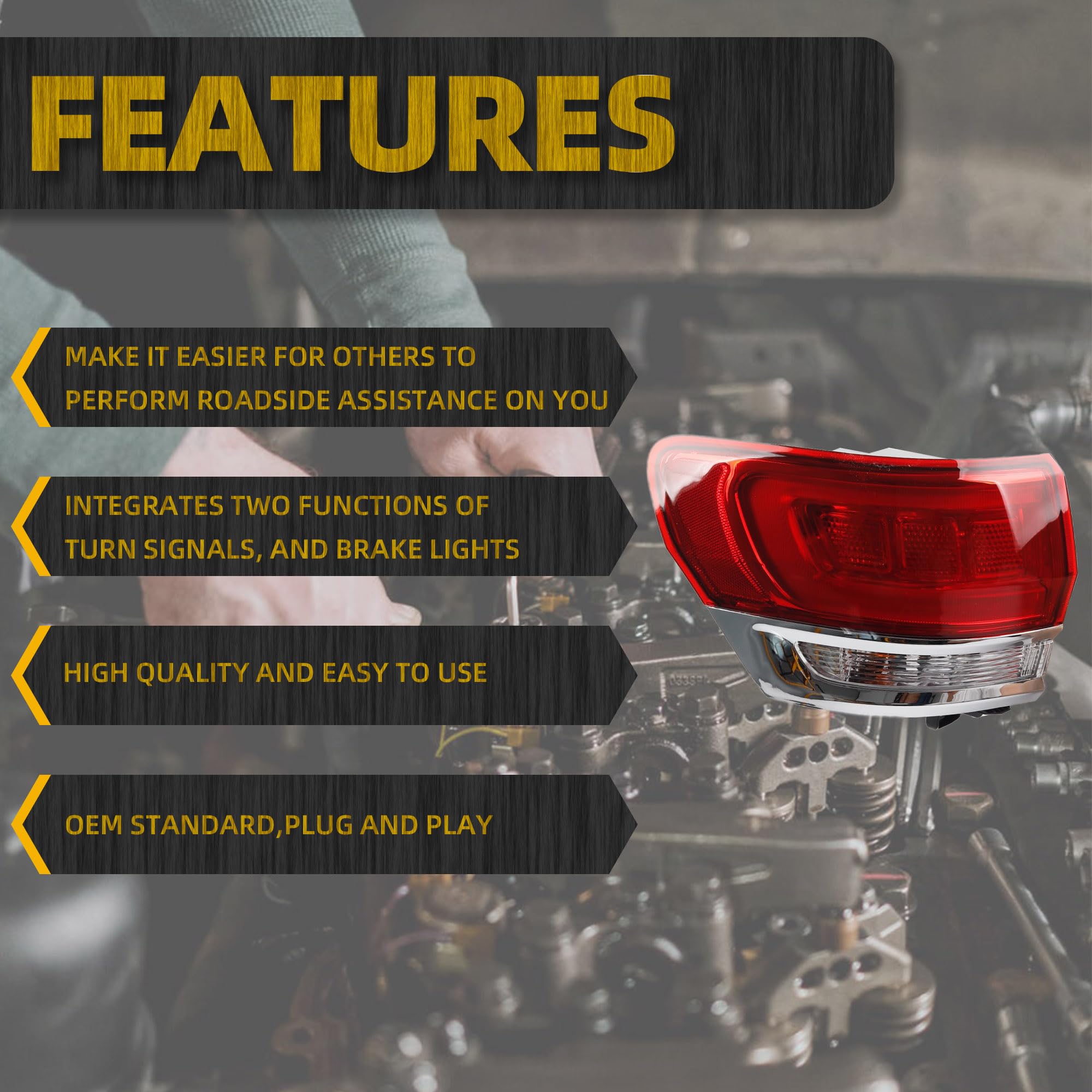【Fitment】This taillight is compatible with 2014-2021 Jeep Grand Cherokee Laredo/Limited/Overland/Summit. Halogen Type Only.