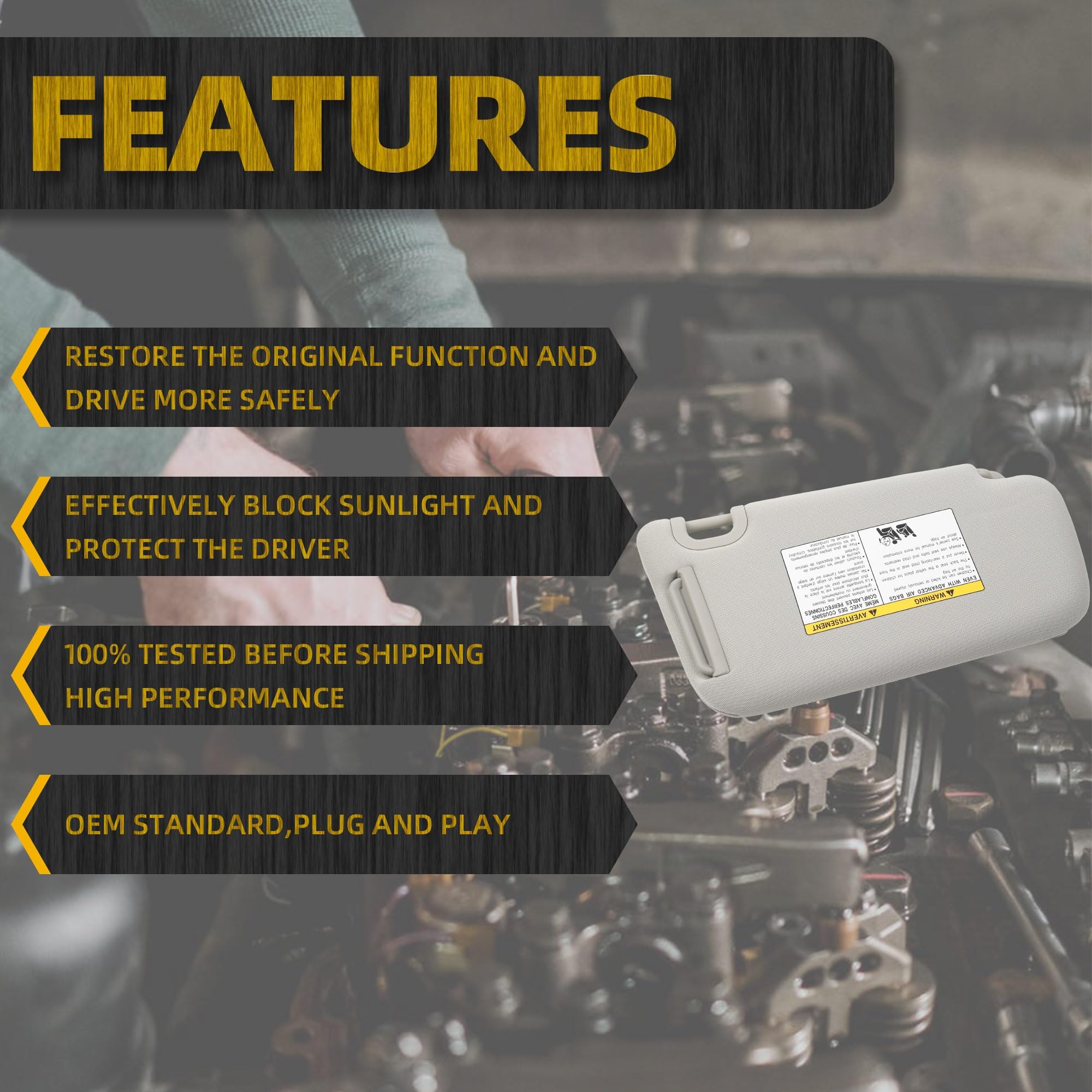 【Fitment】The Driver Side Sun Visor in gray fits for Nissan Sentra 2013 2014 2015 2016 2017 2018 2019.