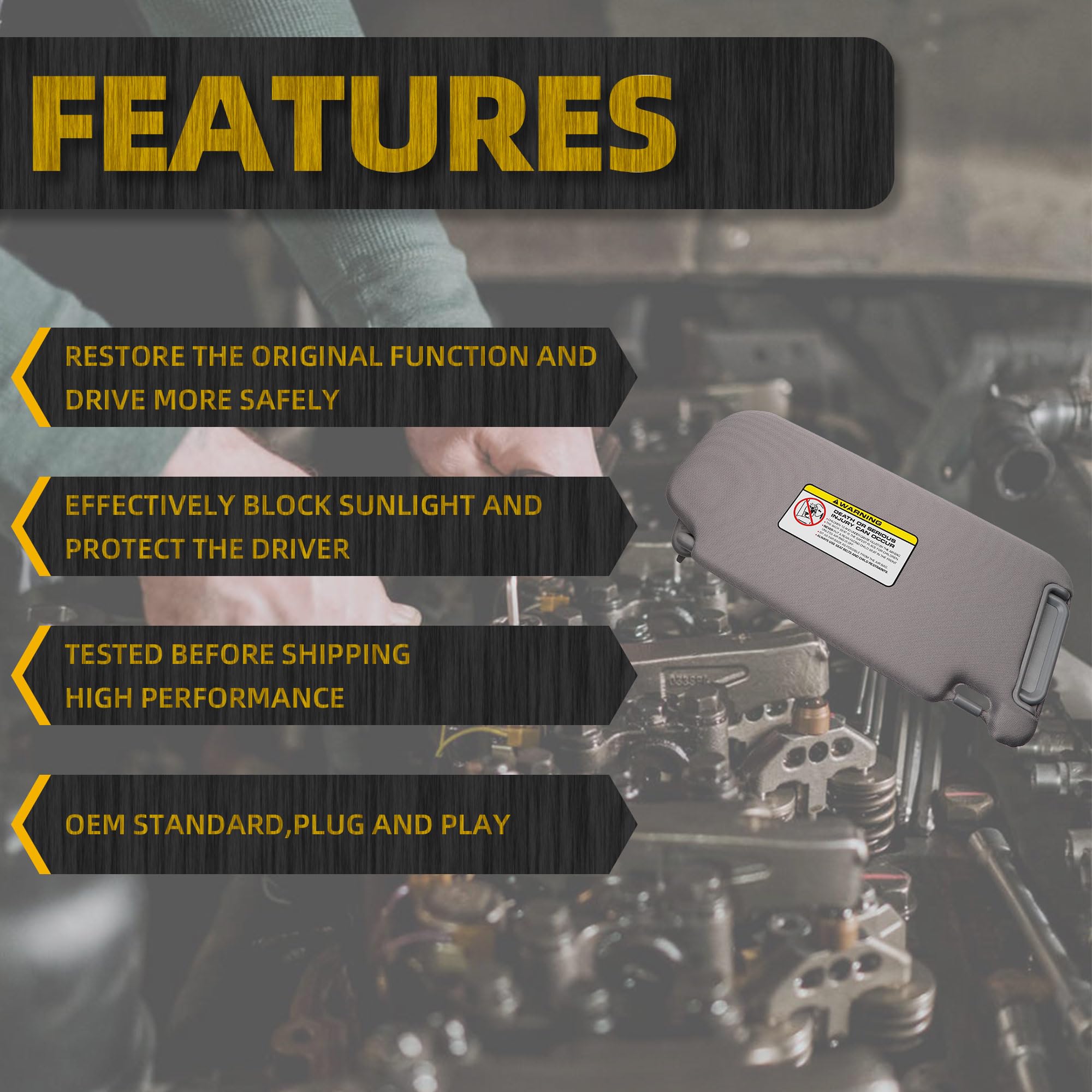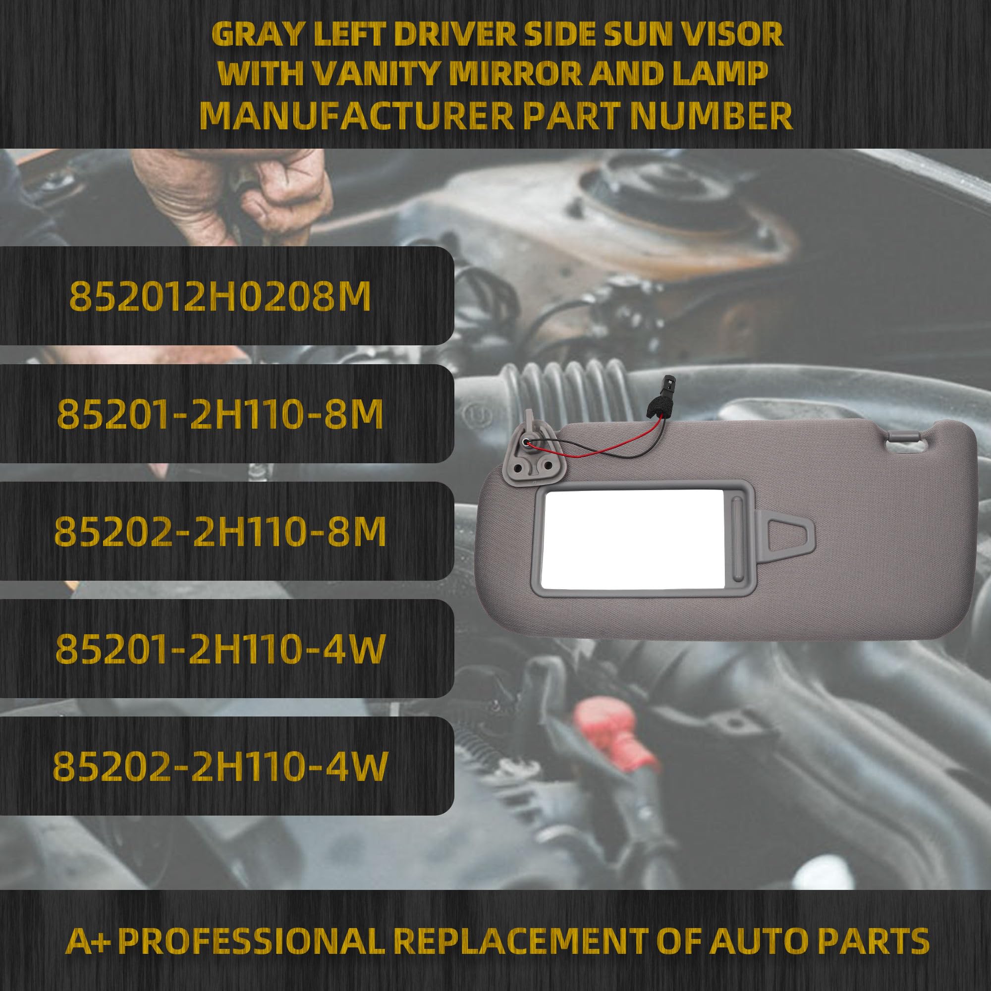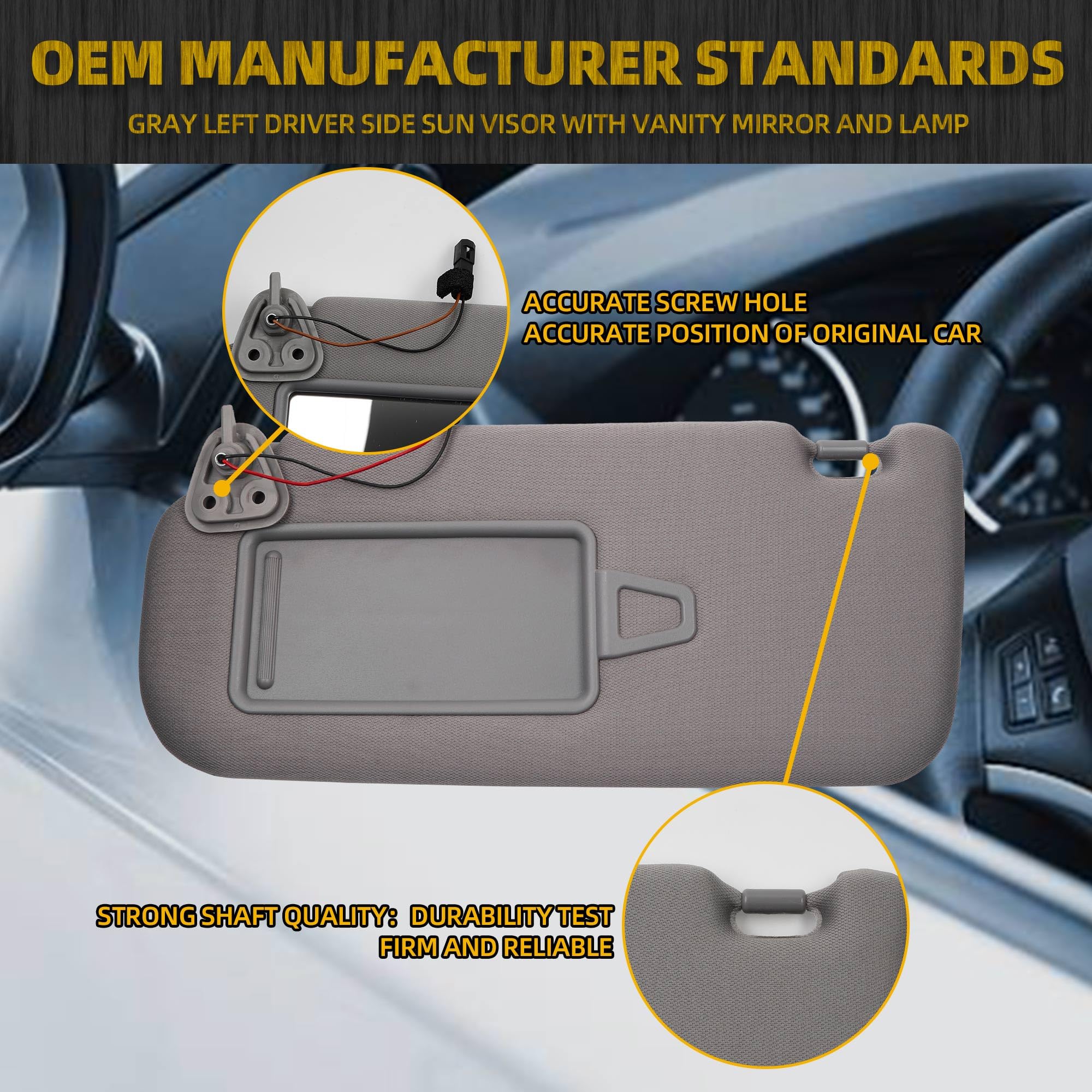 【Description】Gray Left Driver Side Sun Visor Sun Shade with Mirror and Vanity Light