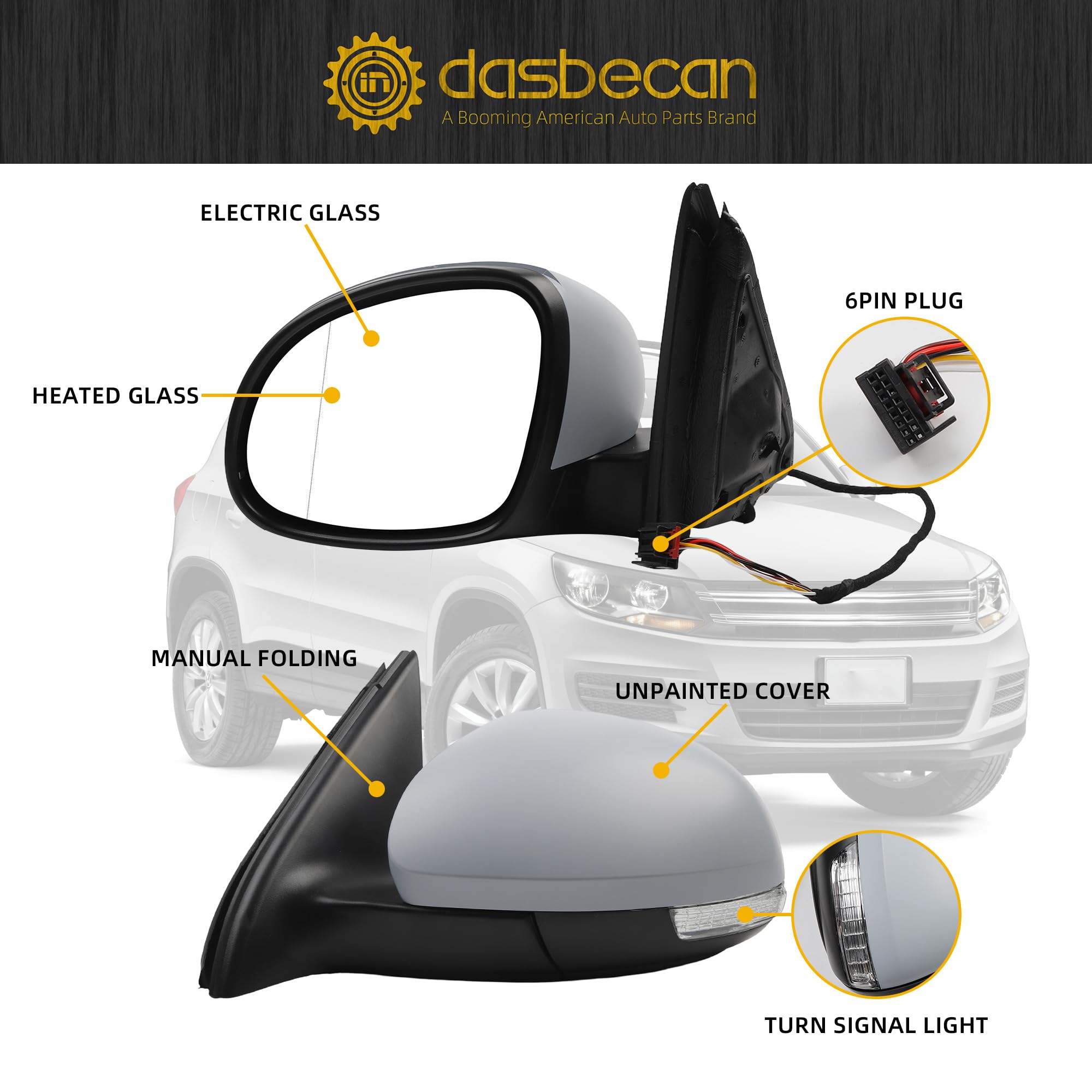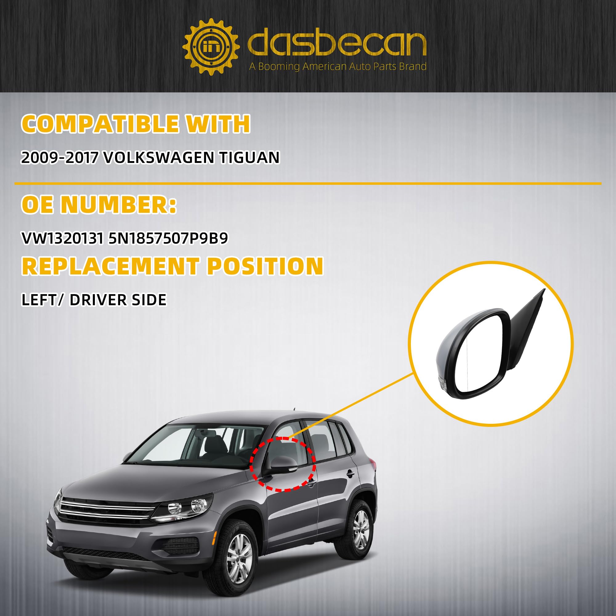 【Compatible with】The Left Side Door Mirror Compatible With 2009-2017 Volkswagen Tiguan(DIY Paintable Cover)
