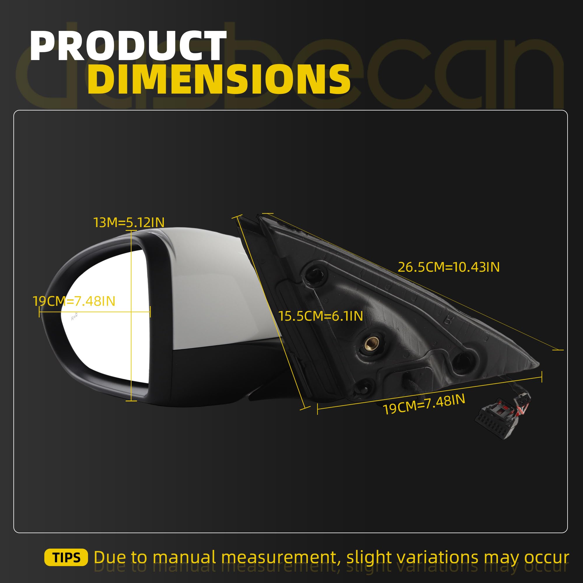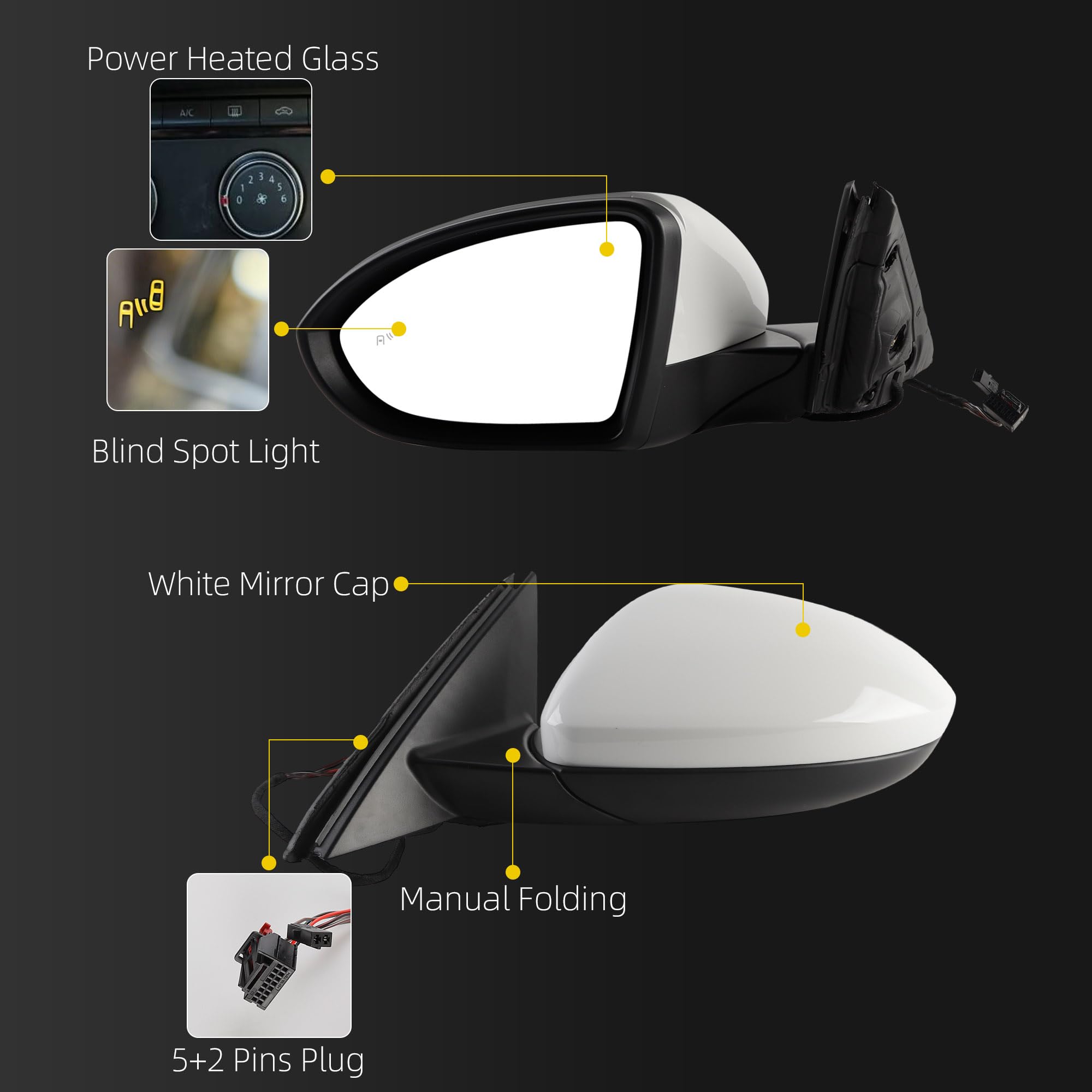 【Excellent Performance】 Meet Original Feature, with Power Heated Glass丨Manual Folding丨Blind Spot Light丨White Mirror Housing; Please Test Functions Before Buckling The Panel