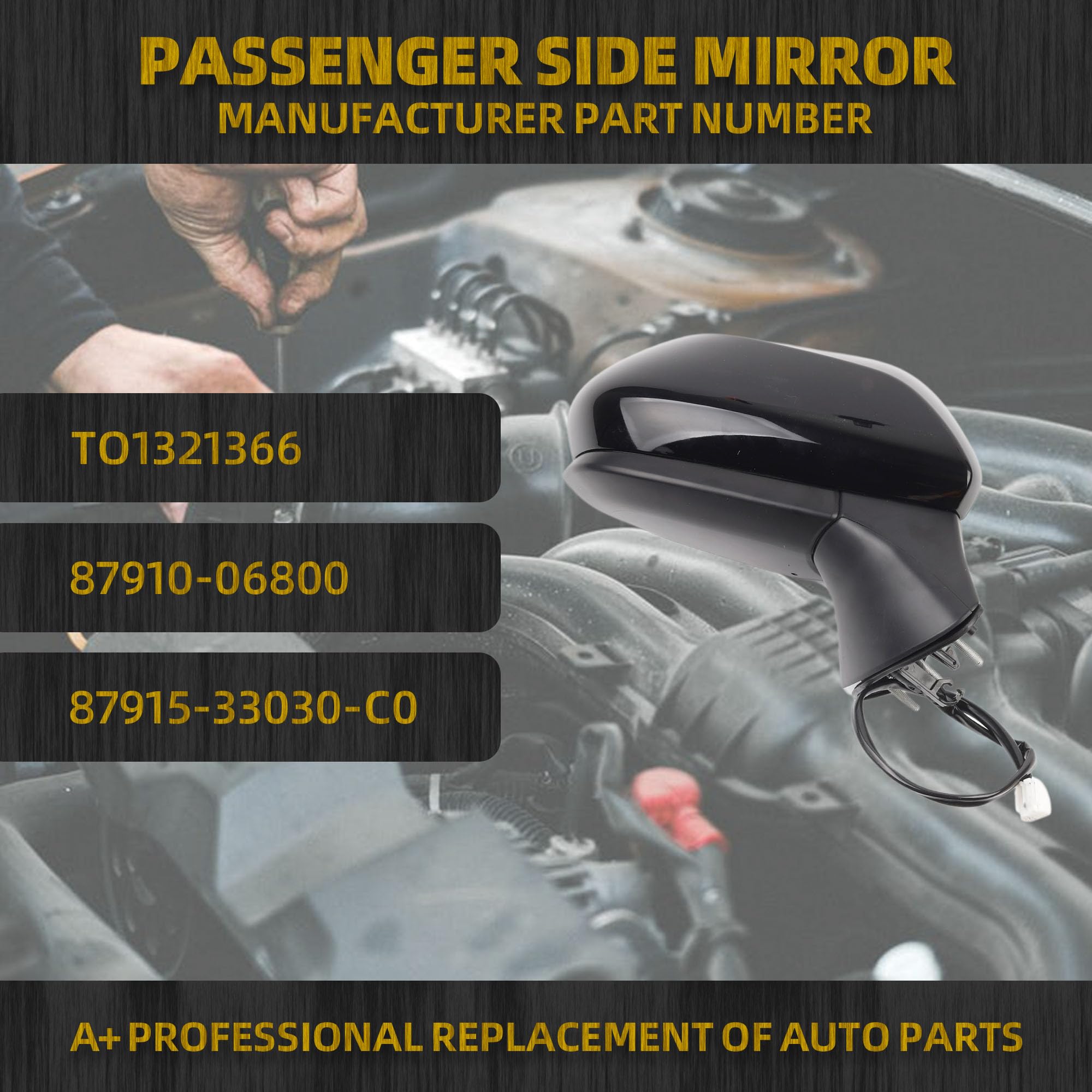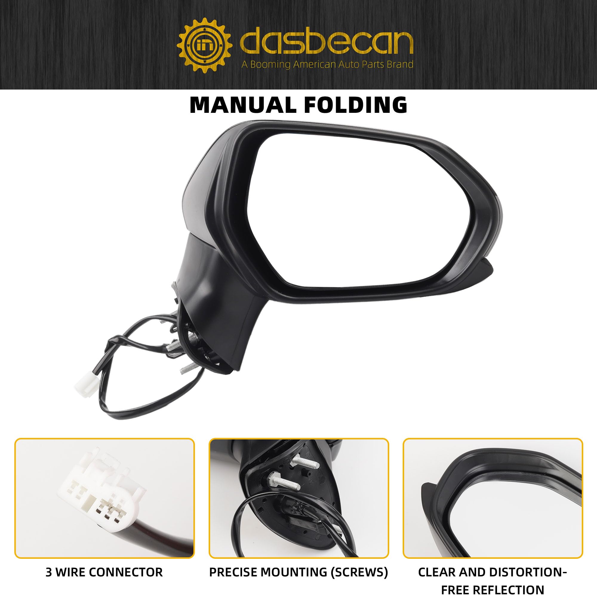 Specifications: Passenger Right, 3pins, Manual folding (Not fit power folding), Powered Adjustment Glass, Non-Heated.