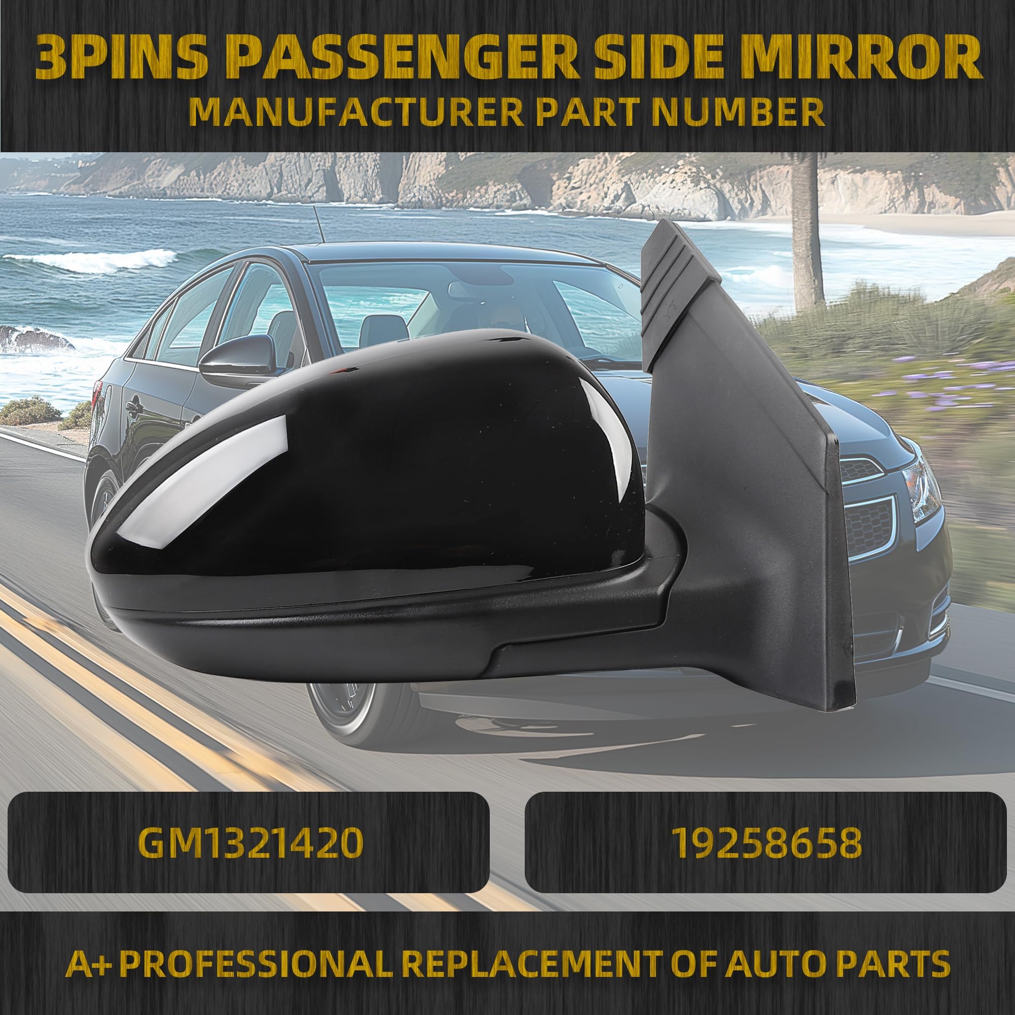Compatible with Chevy: Chevrolet Cruze 2011 2012 2013 2014 2015 2016, driver side mirror, black.