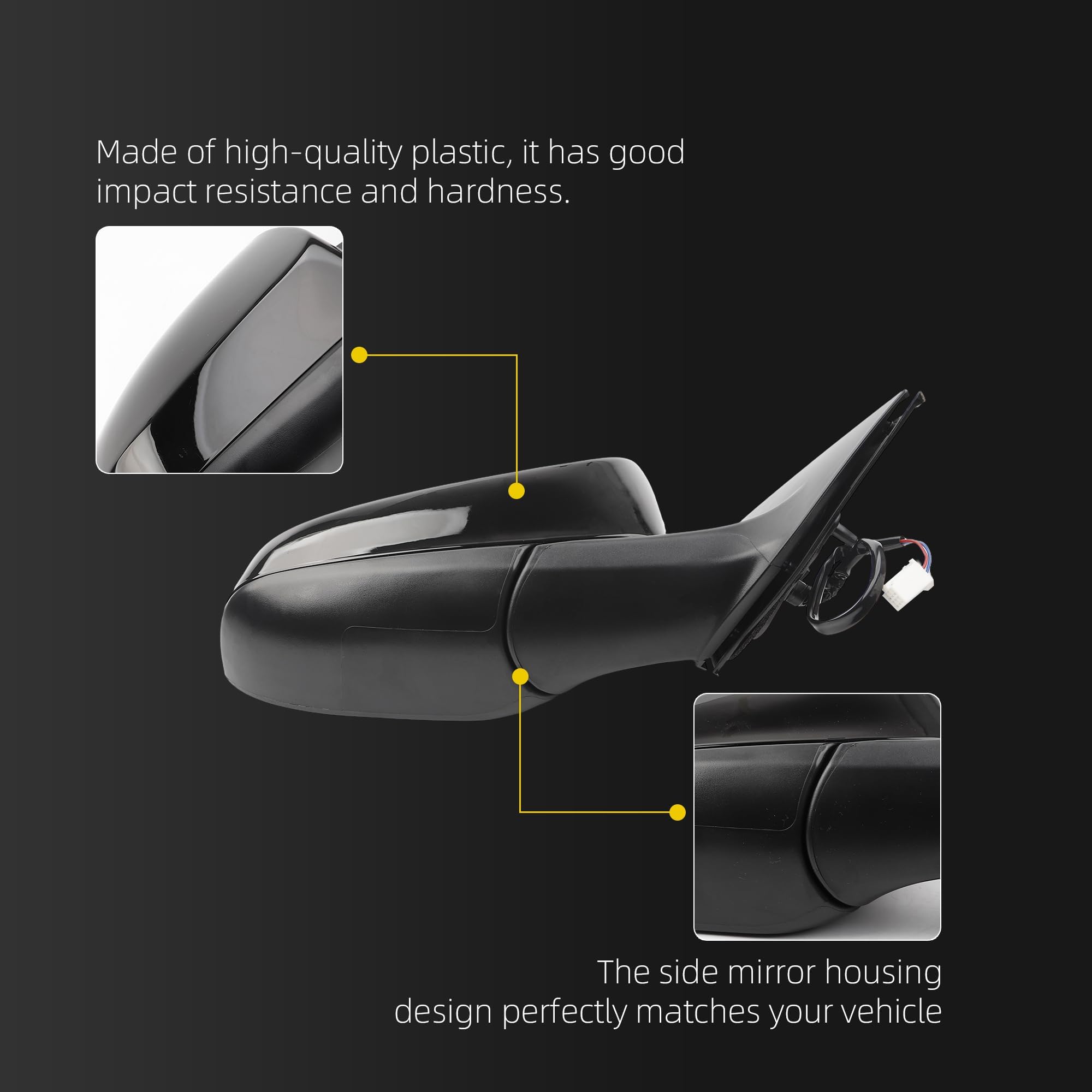 Advantages: The side view mirrors undergo rigorous testing procedures to ensure they meet high-quality standards and match your vehicle's original mirror. We prioritize durability, reliability, and optimal performance to provide you with a long-lasting and dependable replacement part.