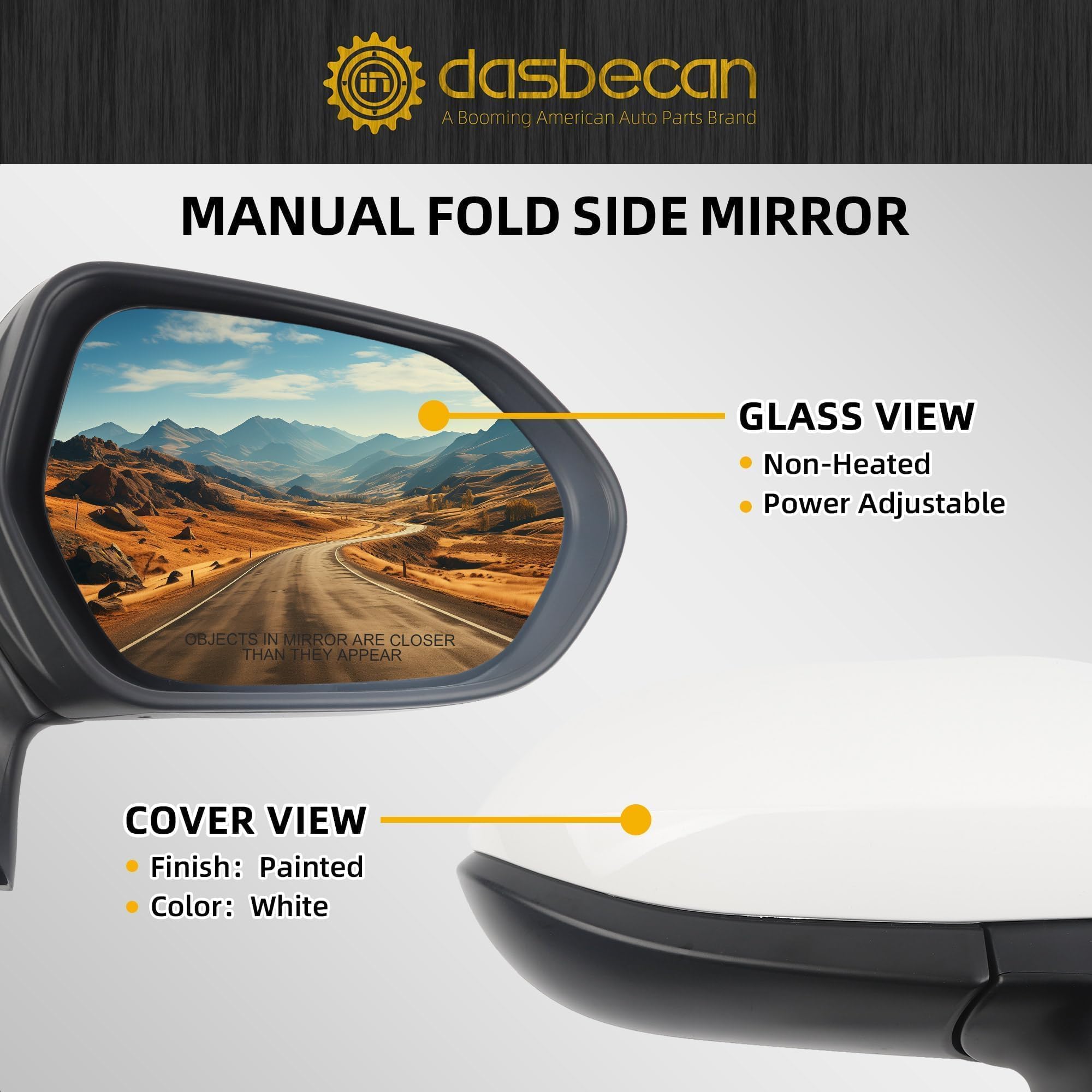 [Specifications] Position: Front Right Passenger Side; Color: White ( Paint to Match ) ; Plug Configuration: 3 Wires/Pins. Fuction: Manual Folding, power Adjustment.