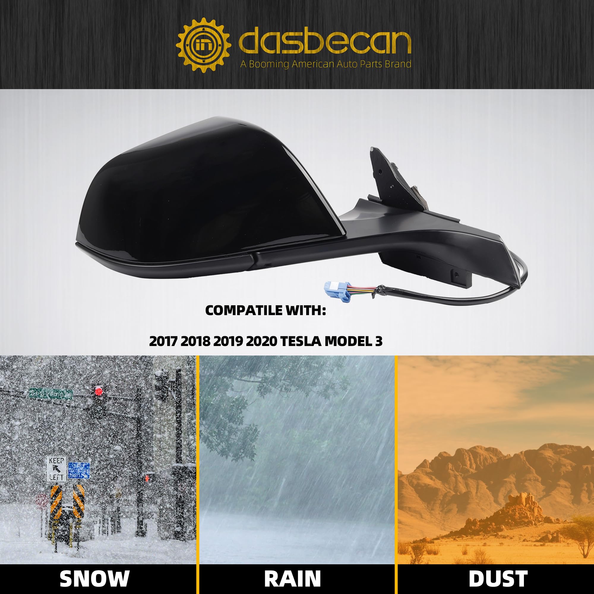 【Comaptible With】 The Passenger Side Mirror Assembly Compatible With Tesla Model 3 2017 2018 2019 2020 2021 2022 2023 (Solid Black)