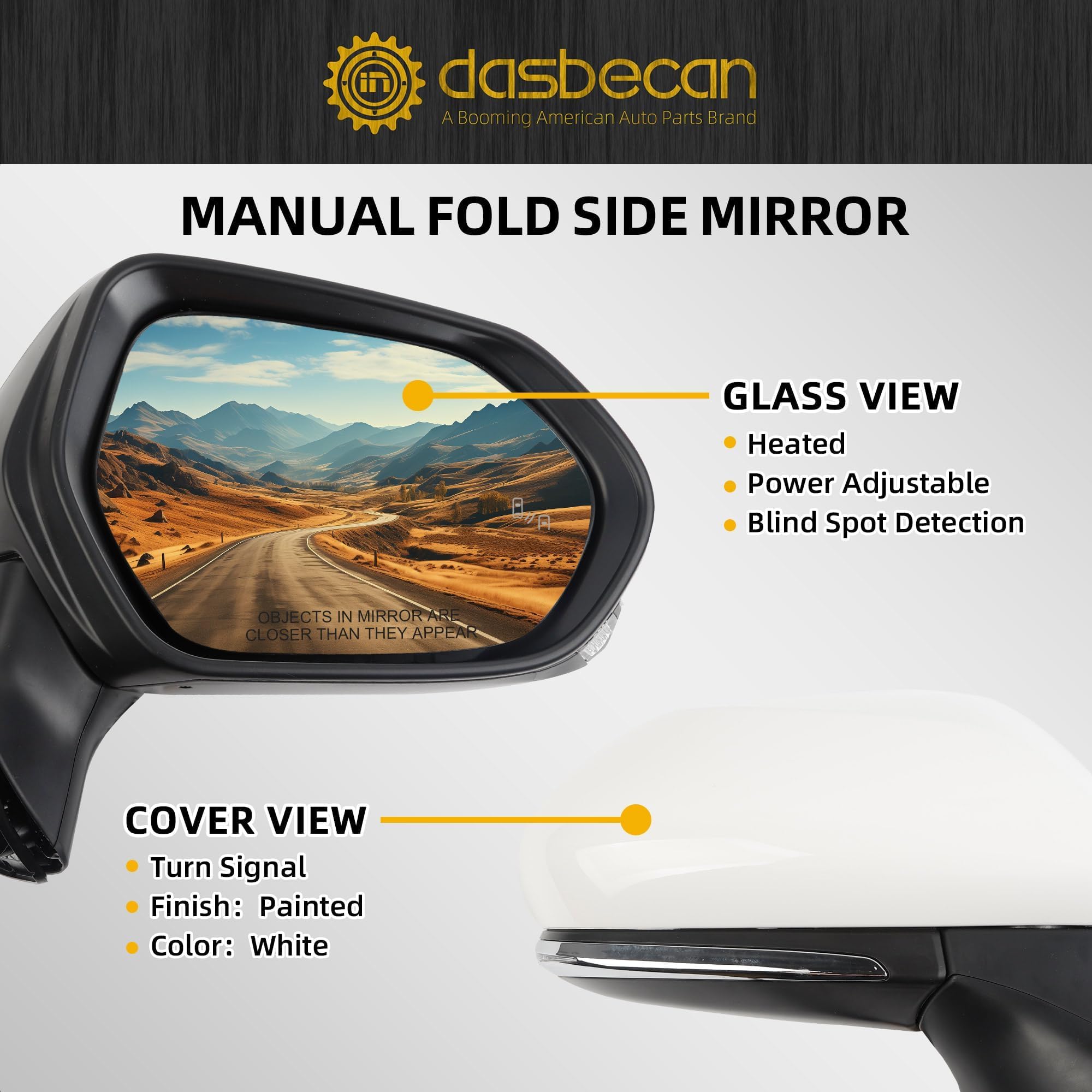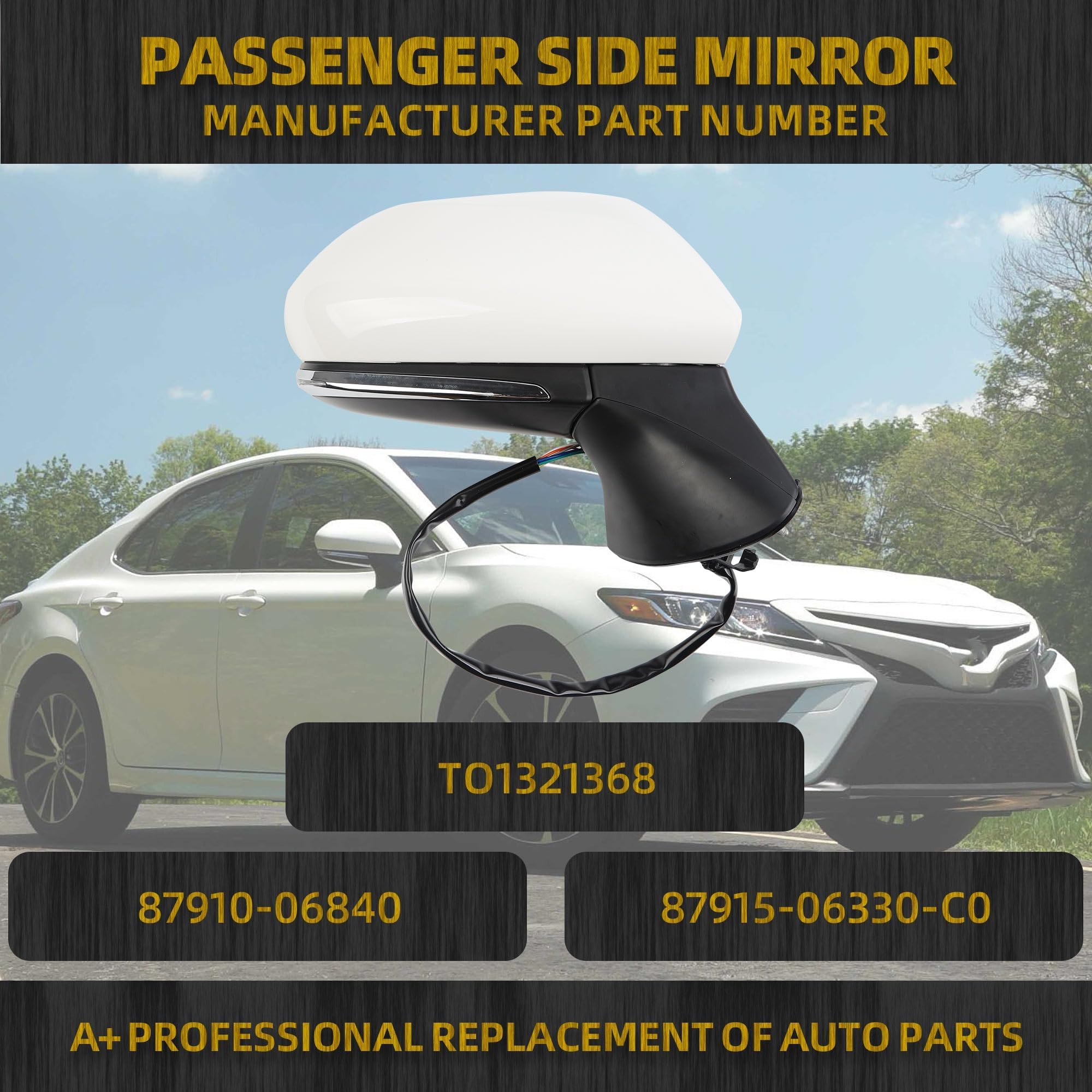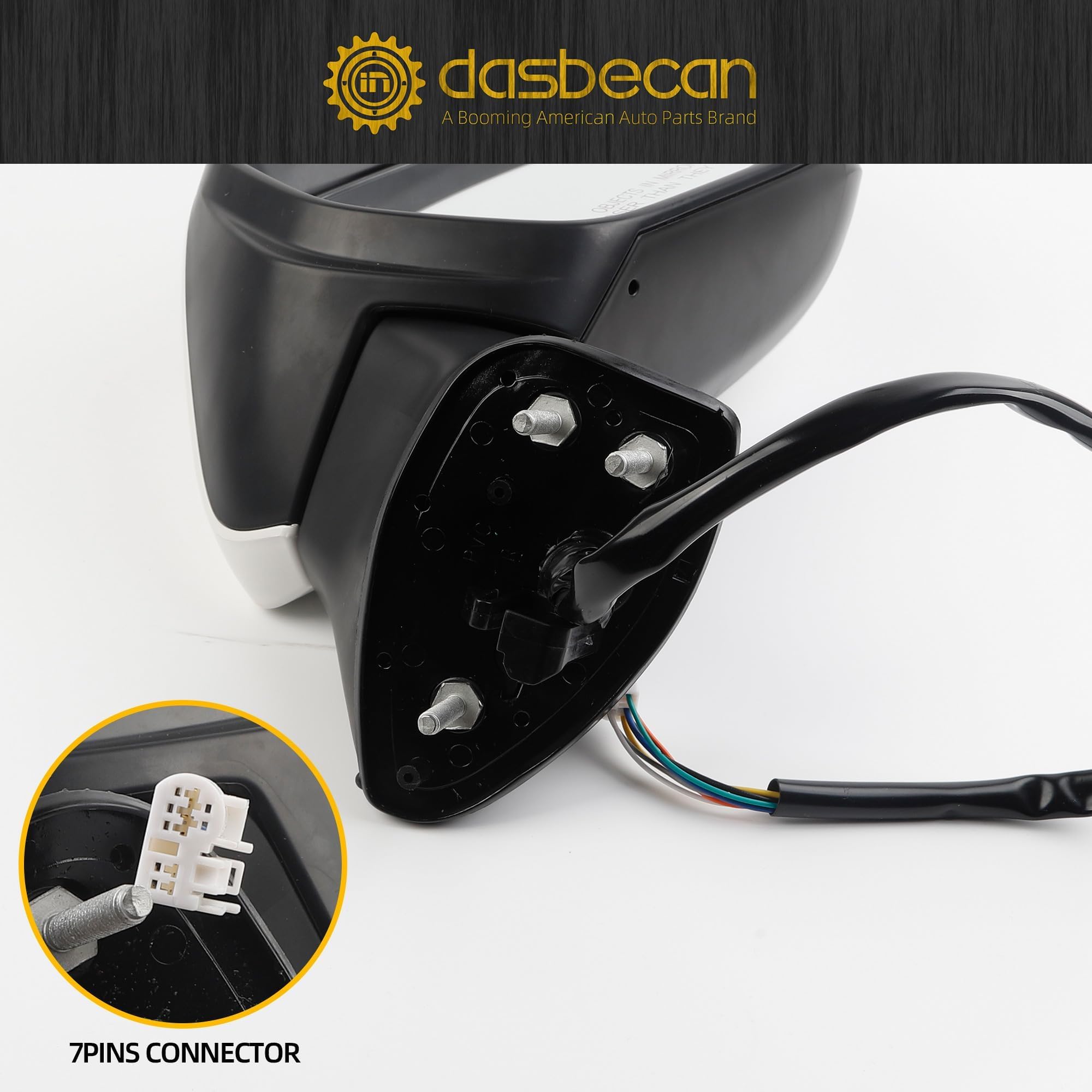 [Specifications] Position: Front Right Passenger Side; Color: White ( Paint to Match ) ; Plug Configuration: 7 Holes 7 Pins. Fuction: Manual Folding, power Adjustment, With BSD (Blind Spot Detection), With Signal, With Heating.