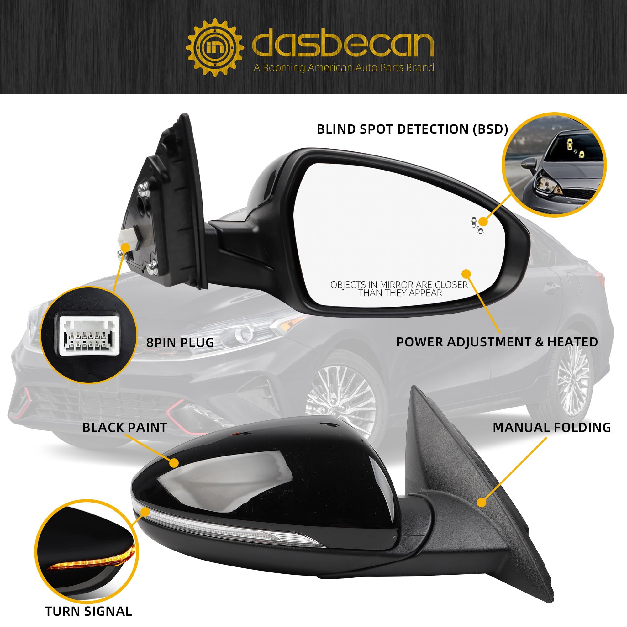 【Function】The Right Side Mirror with Manual Folding, Power Adjustment Glass, Heated, Turn Signal and Blind Spot Detection. Black Paint As Same As Orignal