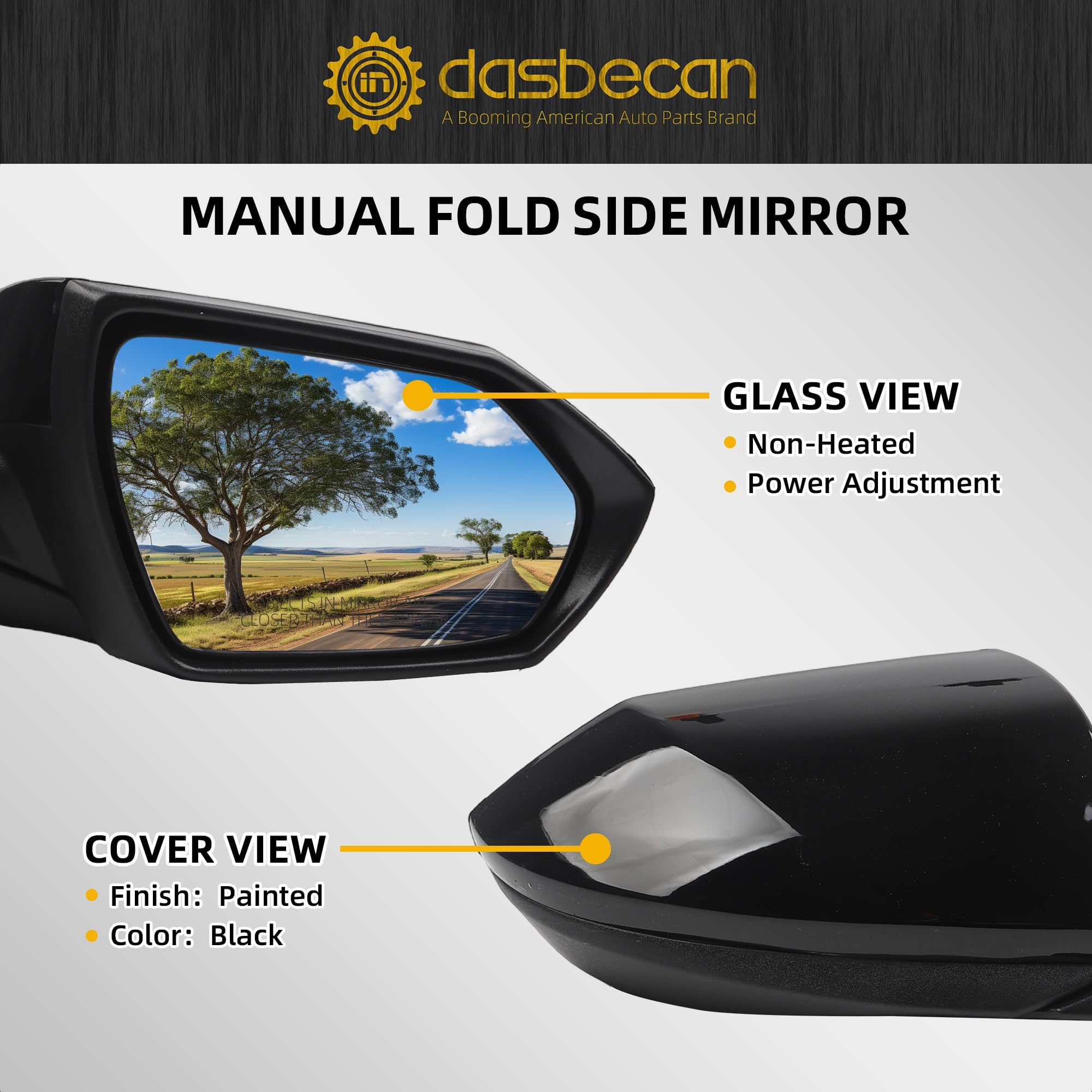 Functions: Non-Heated, Manual Folding, Power Adjustment Glass, Black(Paint to Match)