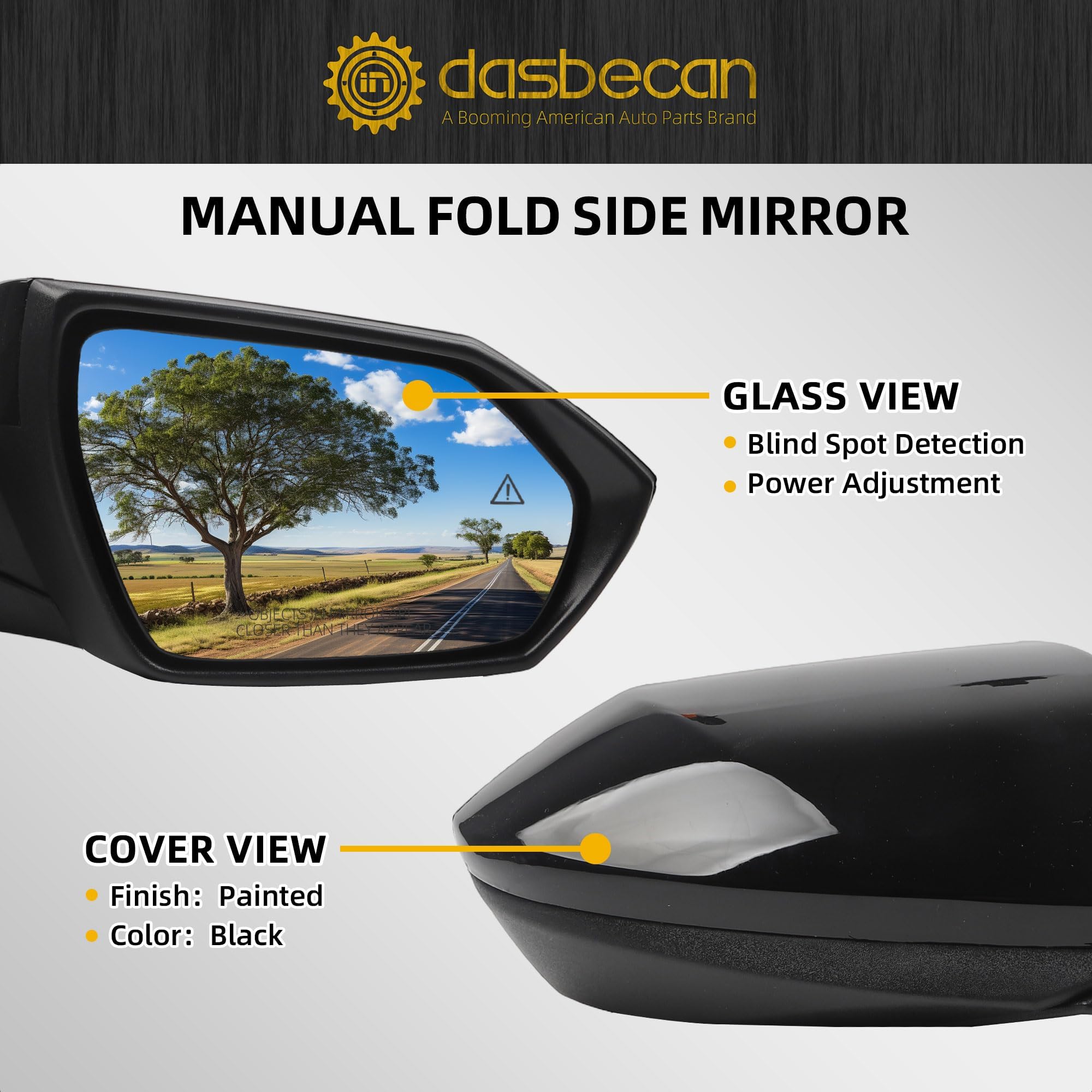 Functions: Manual Folding, Power Adjustment Glass, Blind Spot Detection(BSD), Black(Paint to Match)