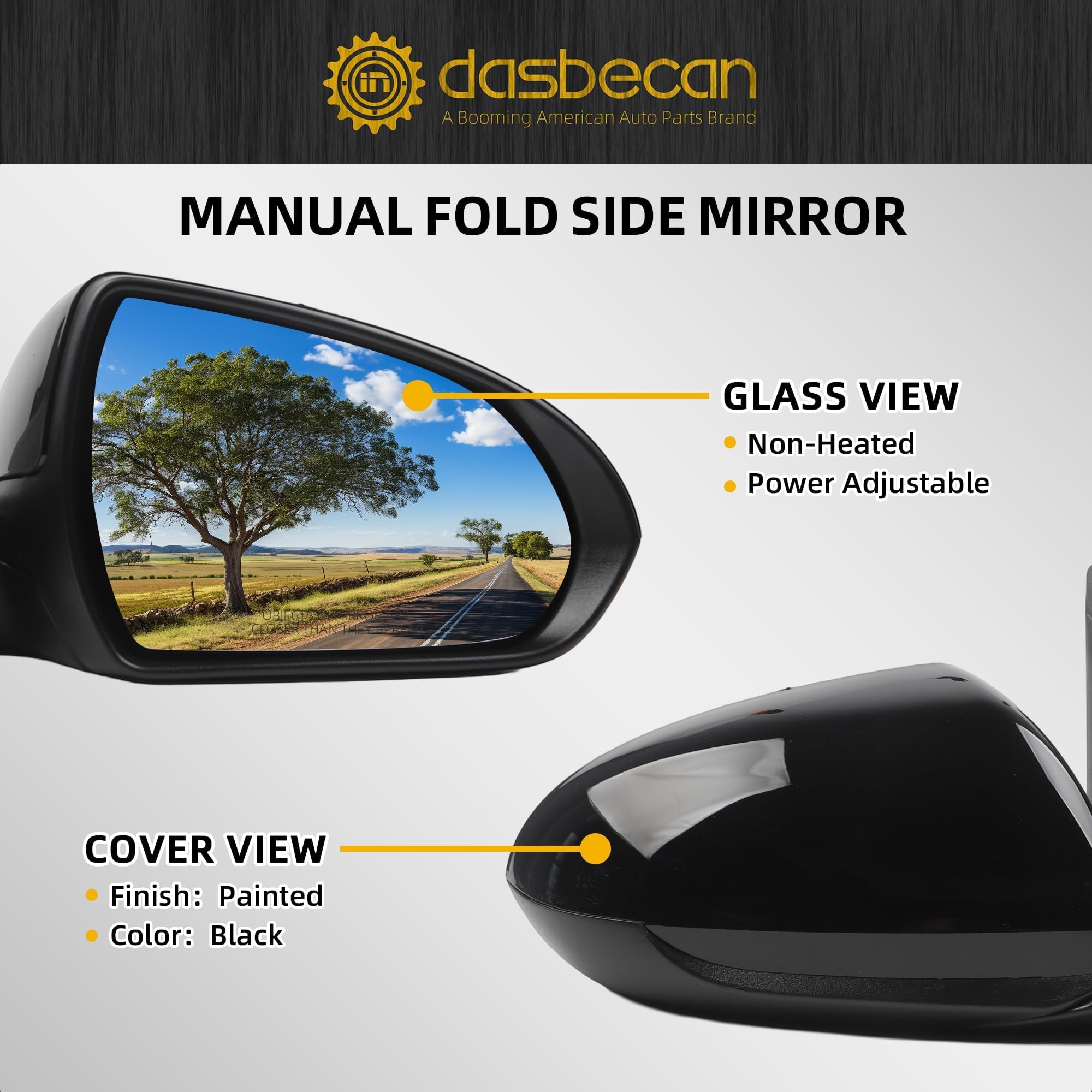Function: Right passenger Side, 3 pins, Manual folding (Not fit power folding), Powered adjustment glass, non-heated.