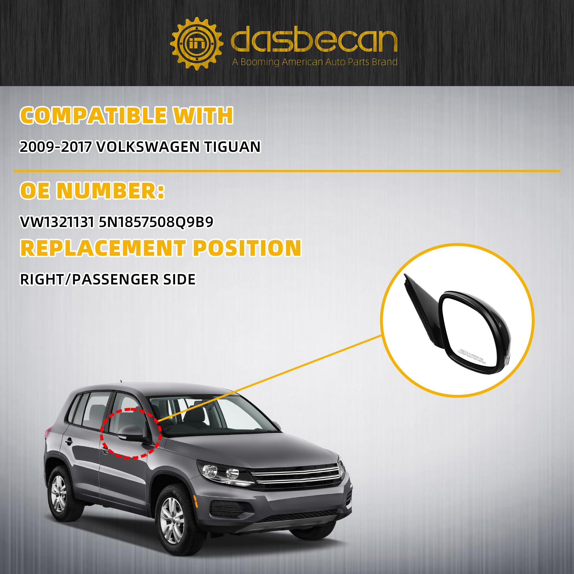 【Compatible with】The Right Side Door Mirror Compatible With 2009-2017 Volkswagen Tiguan(Gloss Black Cover)