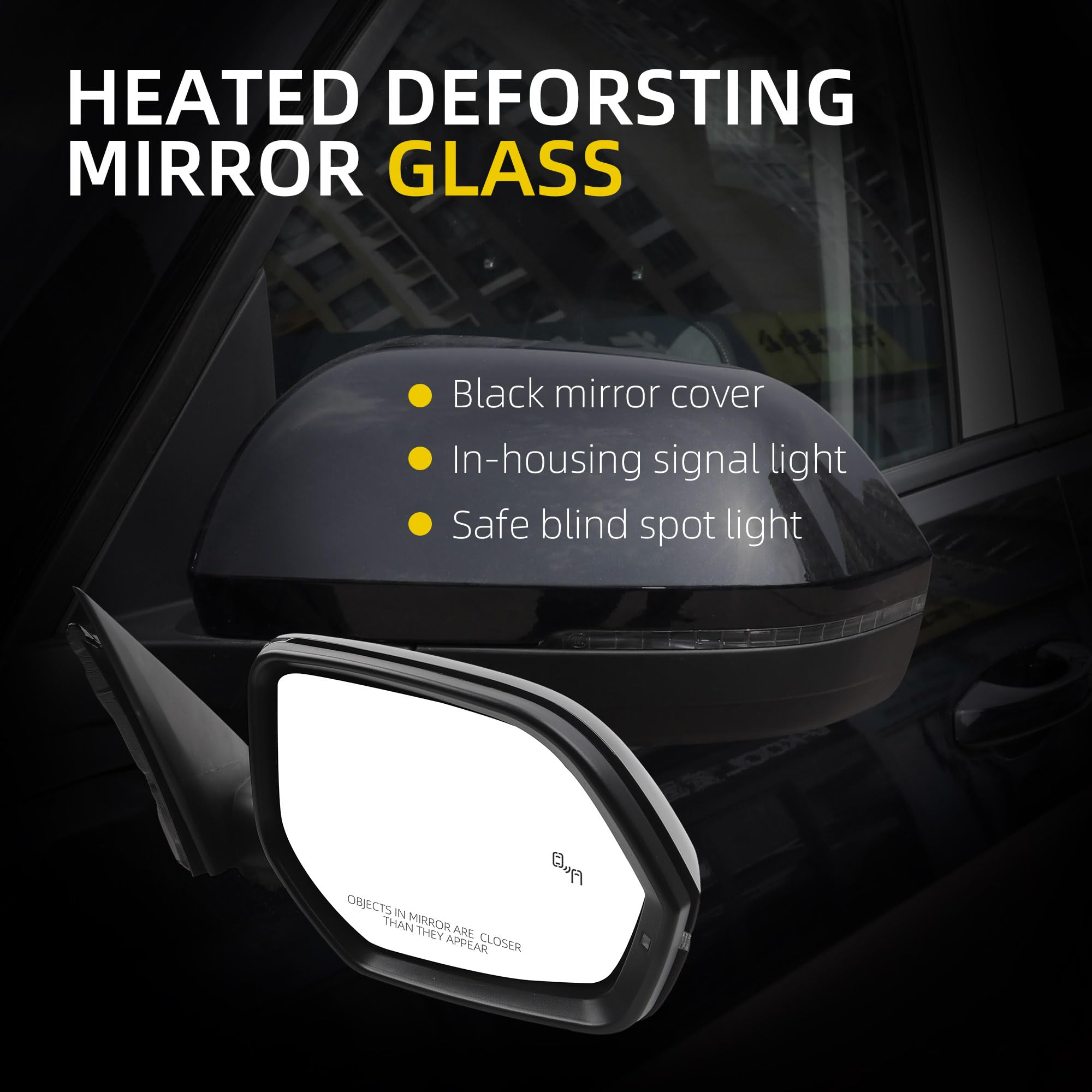 【Feature】 The Right Rear View Mirror is Equipped with Power Heated Glass丨Manual Folding丨Turn Signal丨Blind Spot Light丨Black Mirror Cover