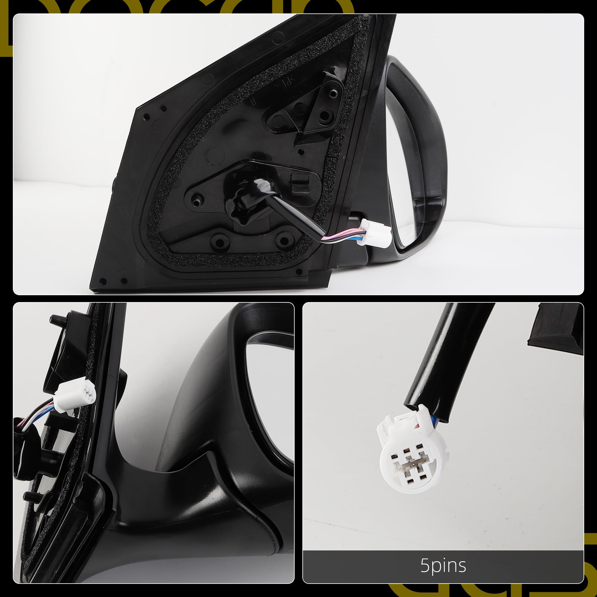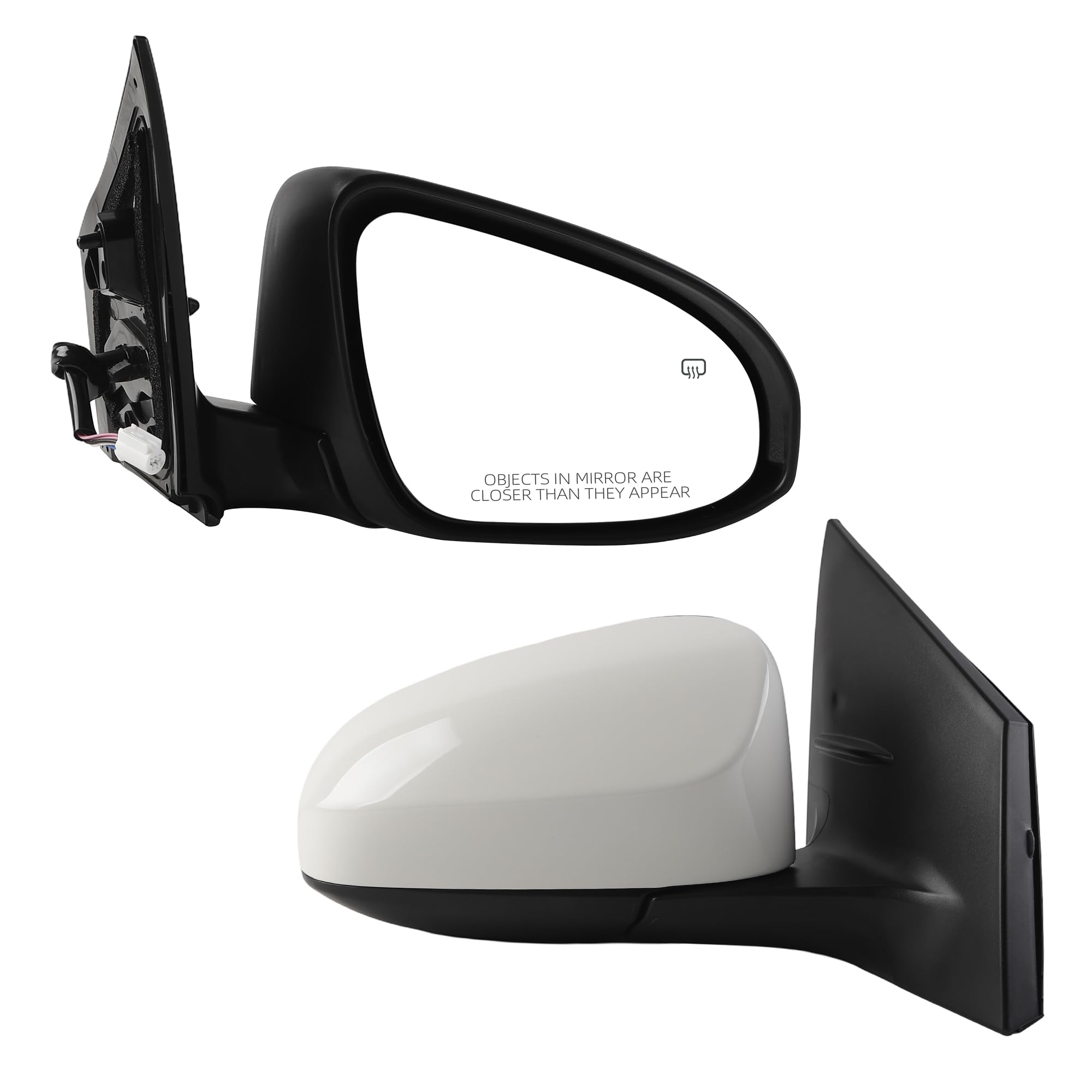 [Specifications] Position: Front Right Passenger Side; Color: White ( Paint to Match ) ; Plug Configuration: 5 Wires/Pins; Fuction: Manual Folding, Power Adjustment, with Heated.