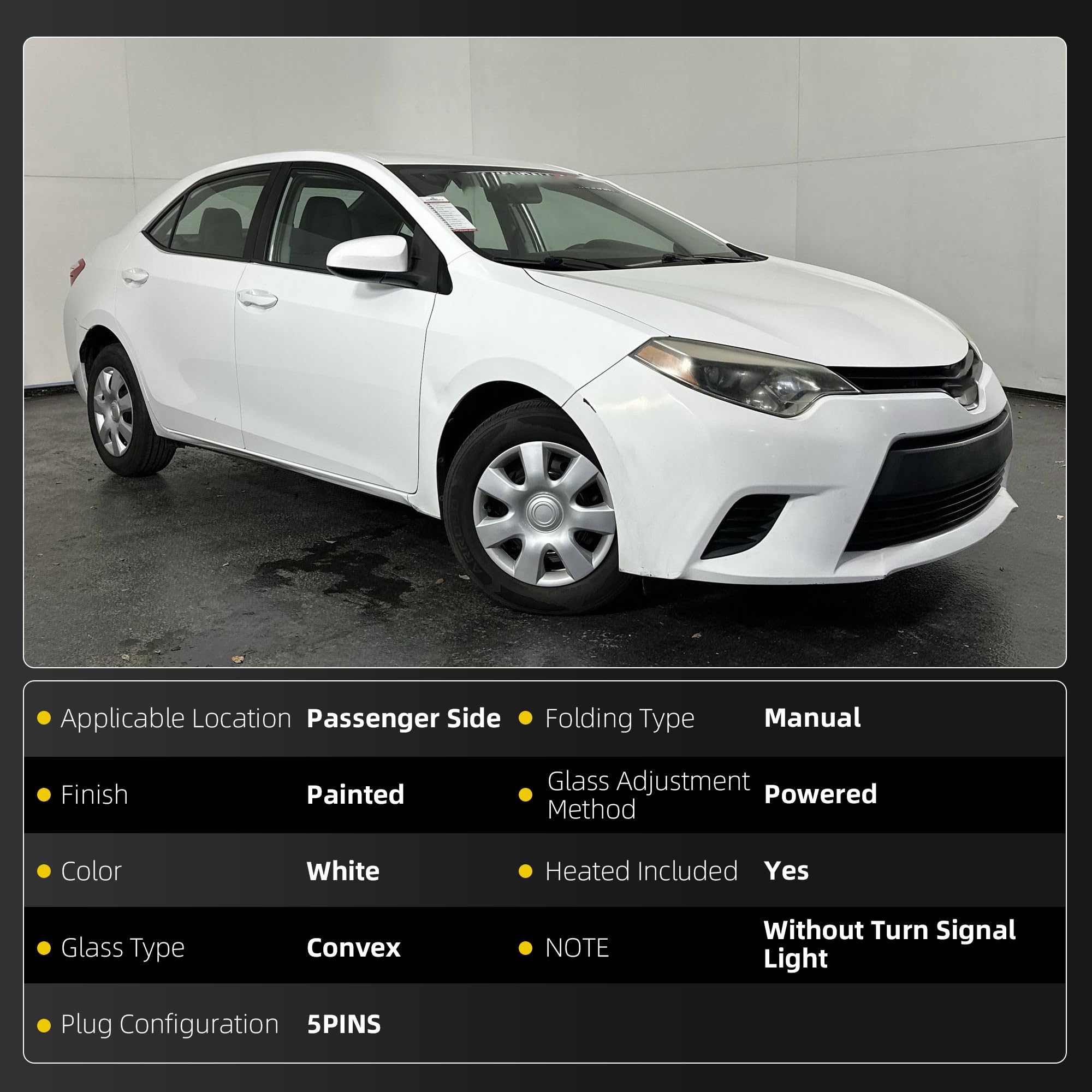 Fitment: Compatible with Toyota Corolla 2014-2019, Right Passenger Side