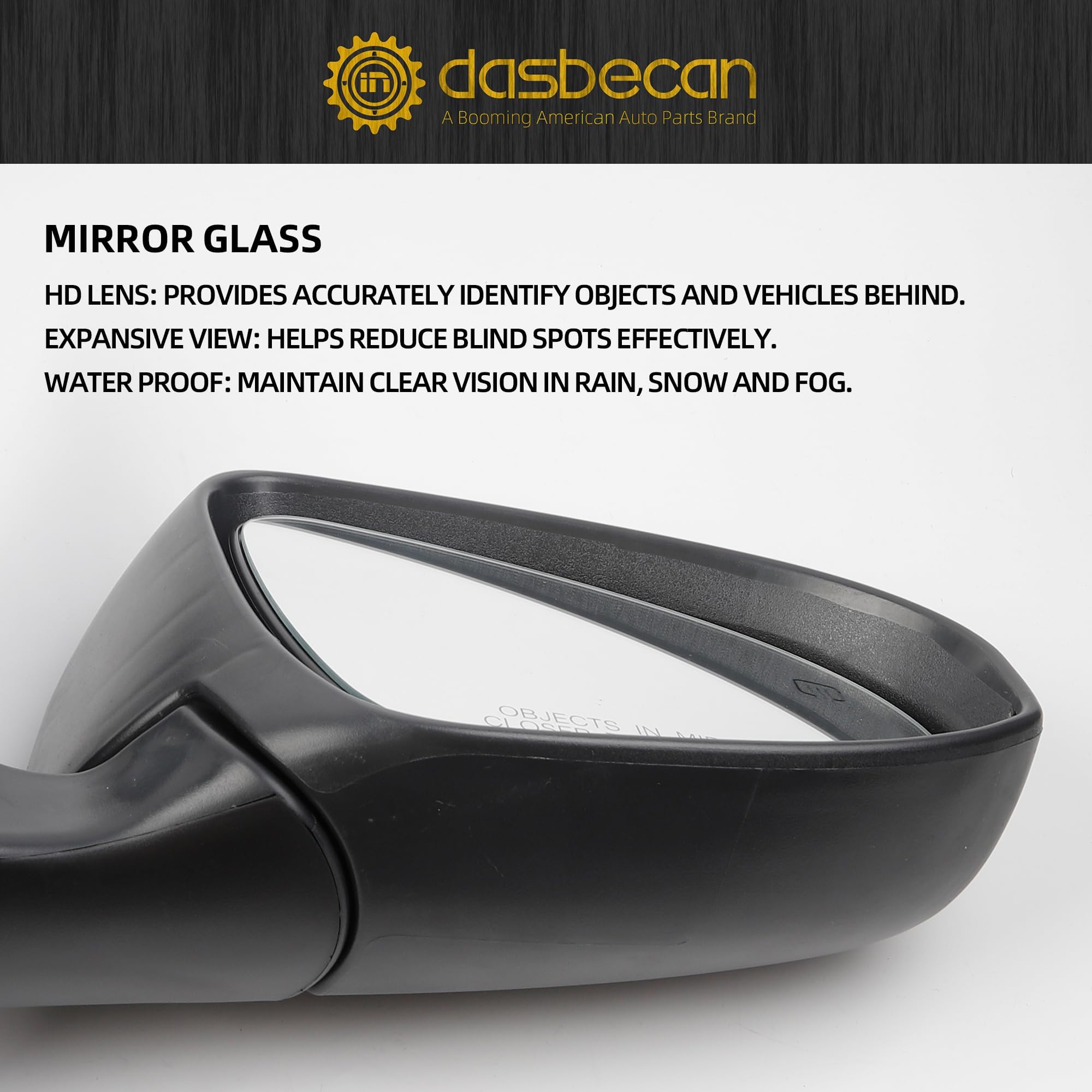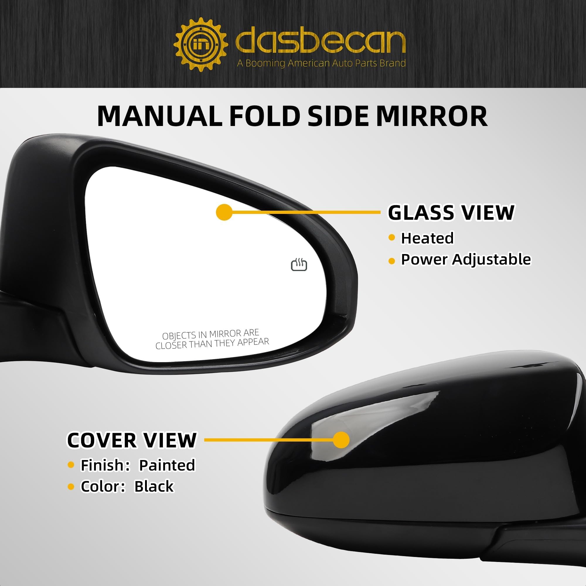 Function: Power Adjustable Mirror Glass, Manual Folding, with Heated, without Turn Signal Light, without Blind Spot Detection, Black Cover Paintable, 5 Pins Connector