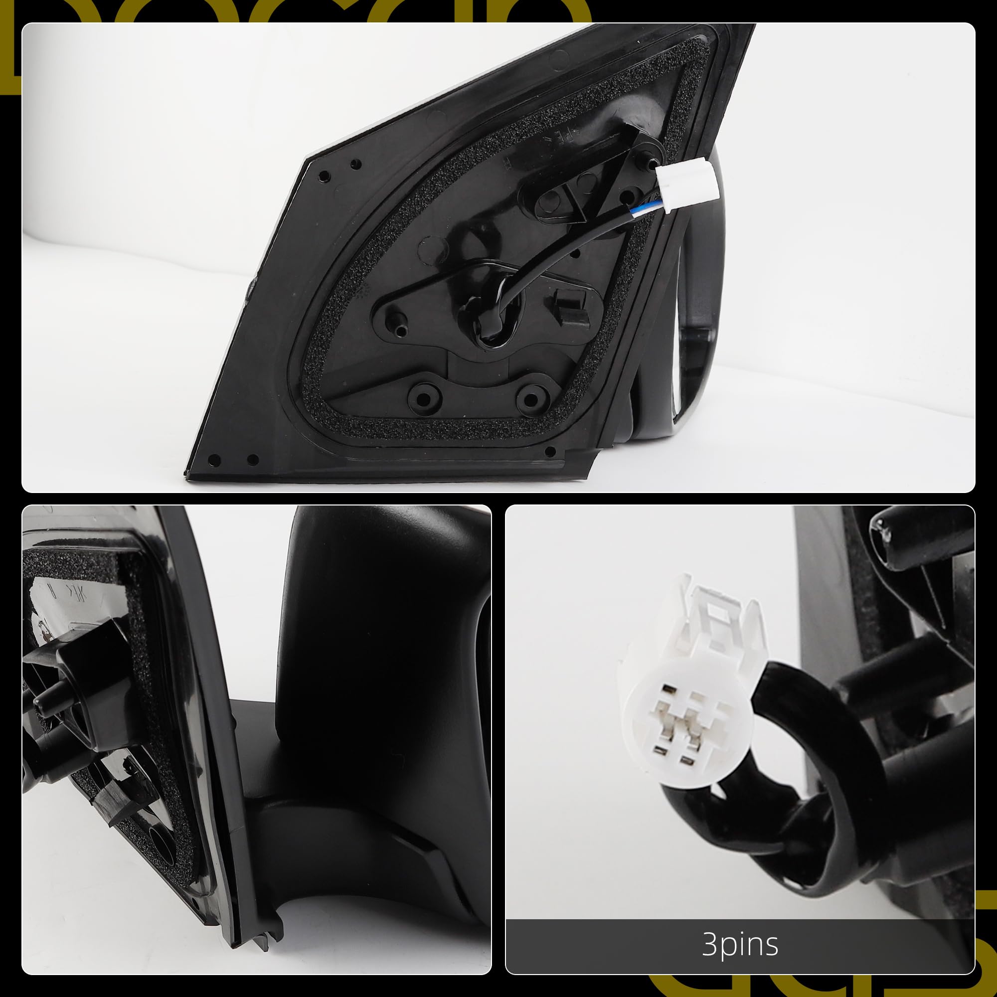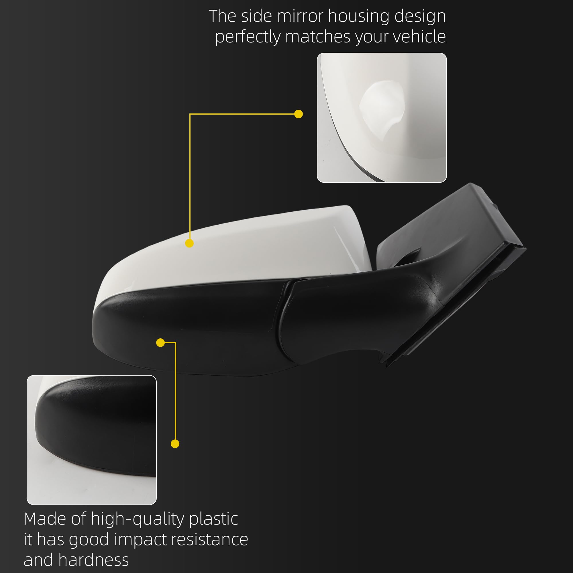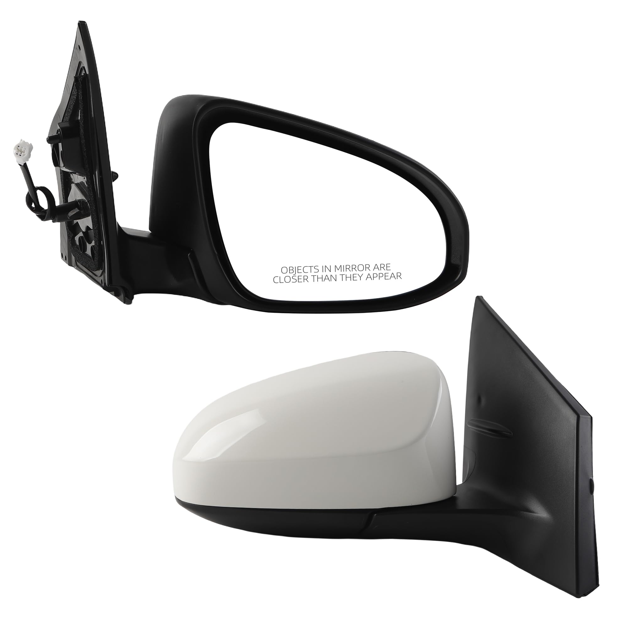 [Specifications] Position: Front Right Passenger Side; Color: White ( Paint to Match ) ; Plug Configuration: 3 Wires/Pins; Fuction: Manual Folding, Power Adjustment.
