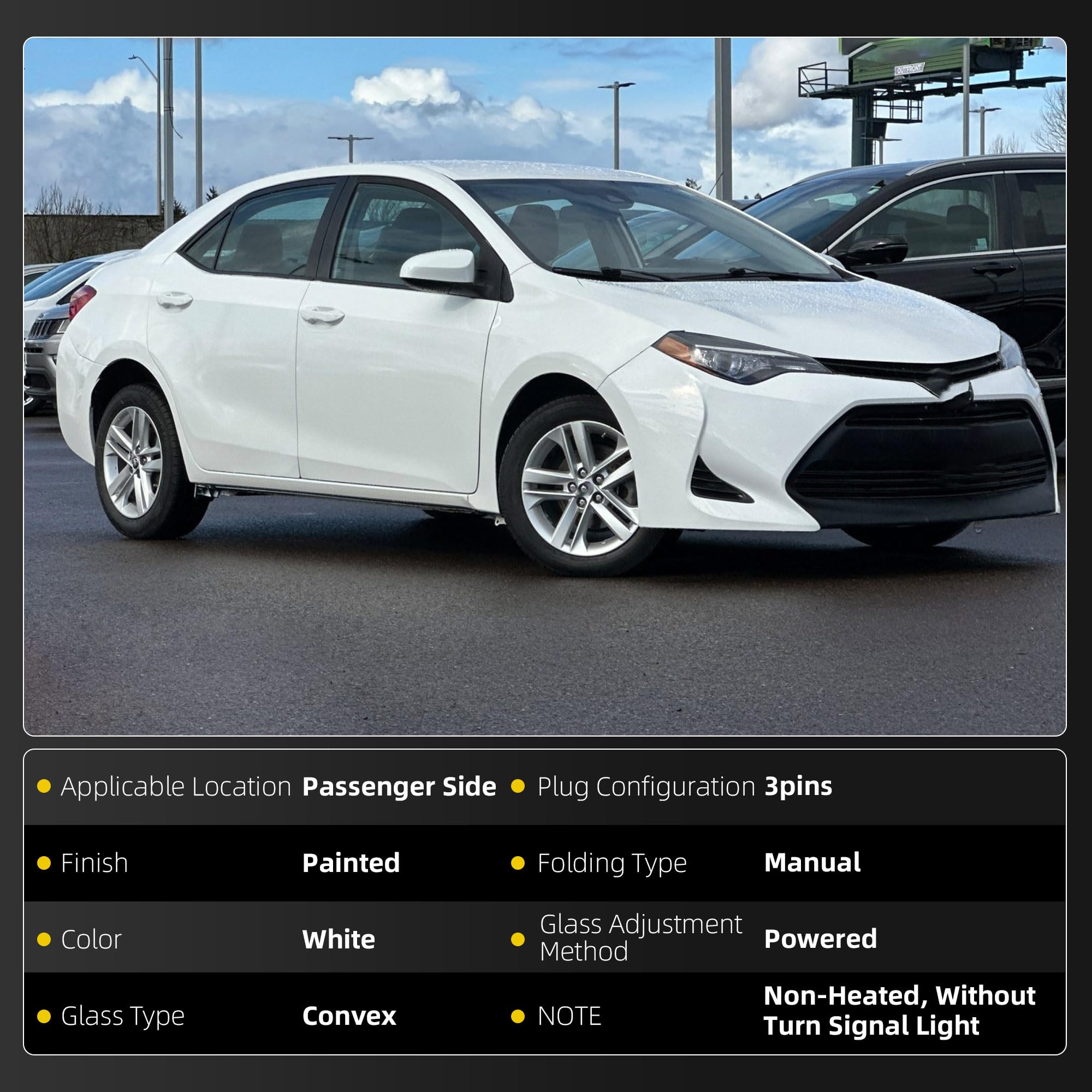 Fitment: Compatible with Toyota Corolla 2014-2019, Right Passenger Side