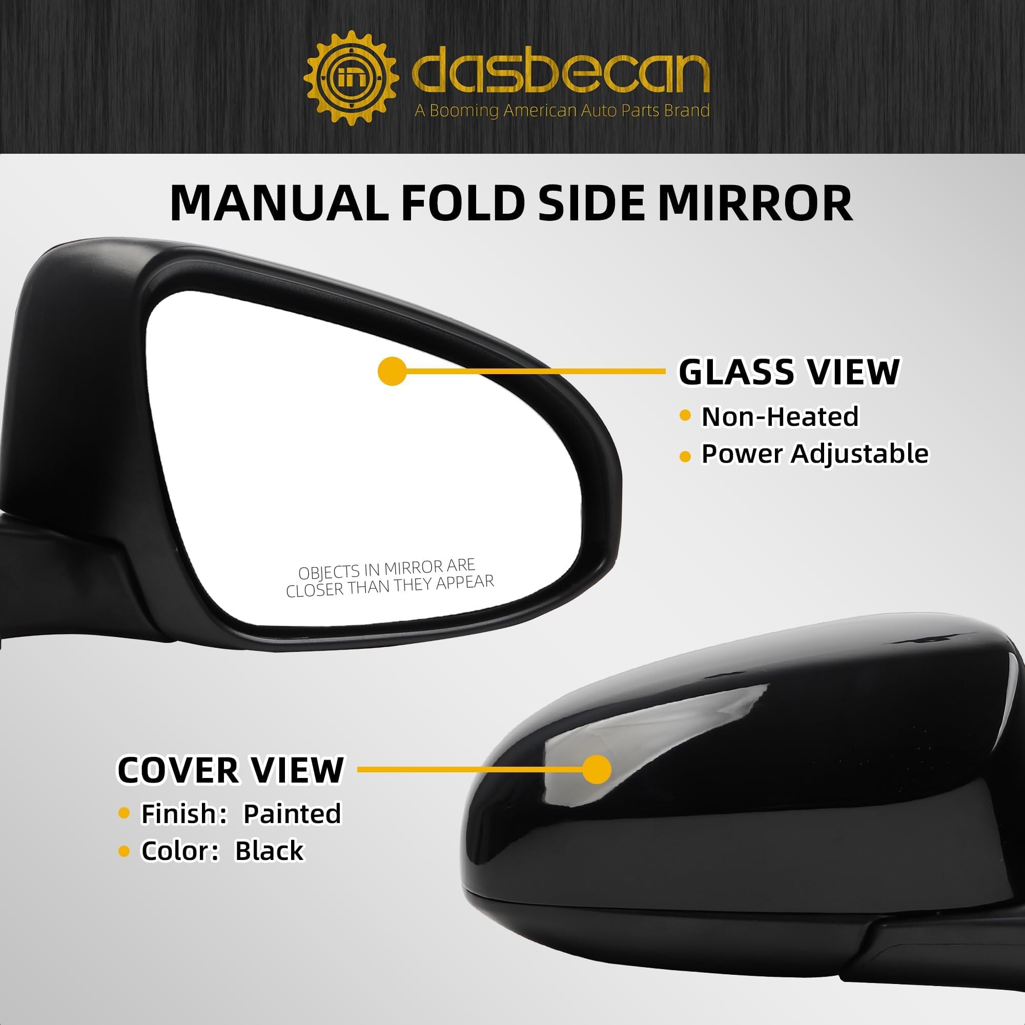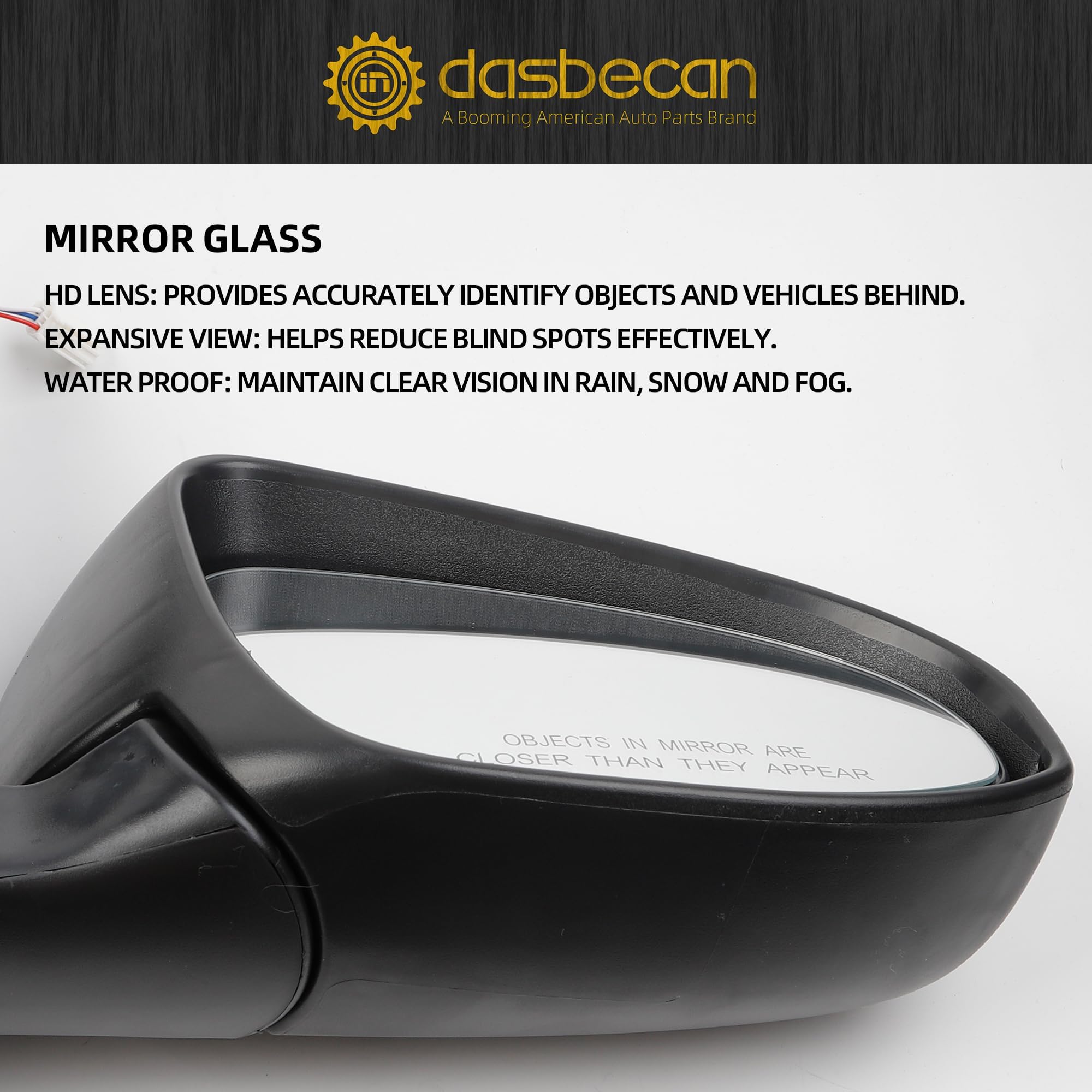 Function: Power Adjustable Mirror Glass, Manual Folding, without Heated, without Turn Signal Light, without Blind Spot Detection, Black Cover Paintable, 3 Pins Connector