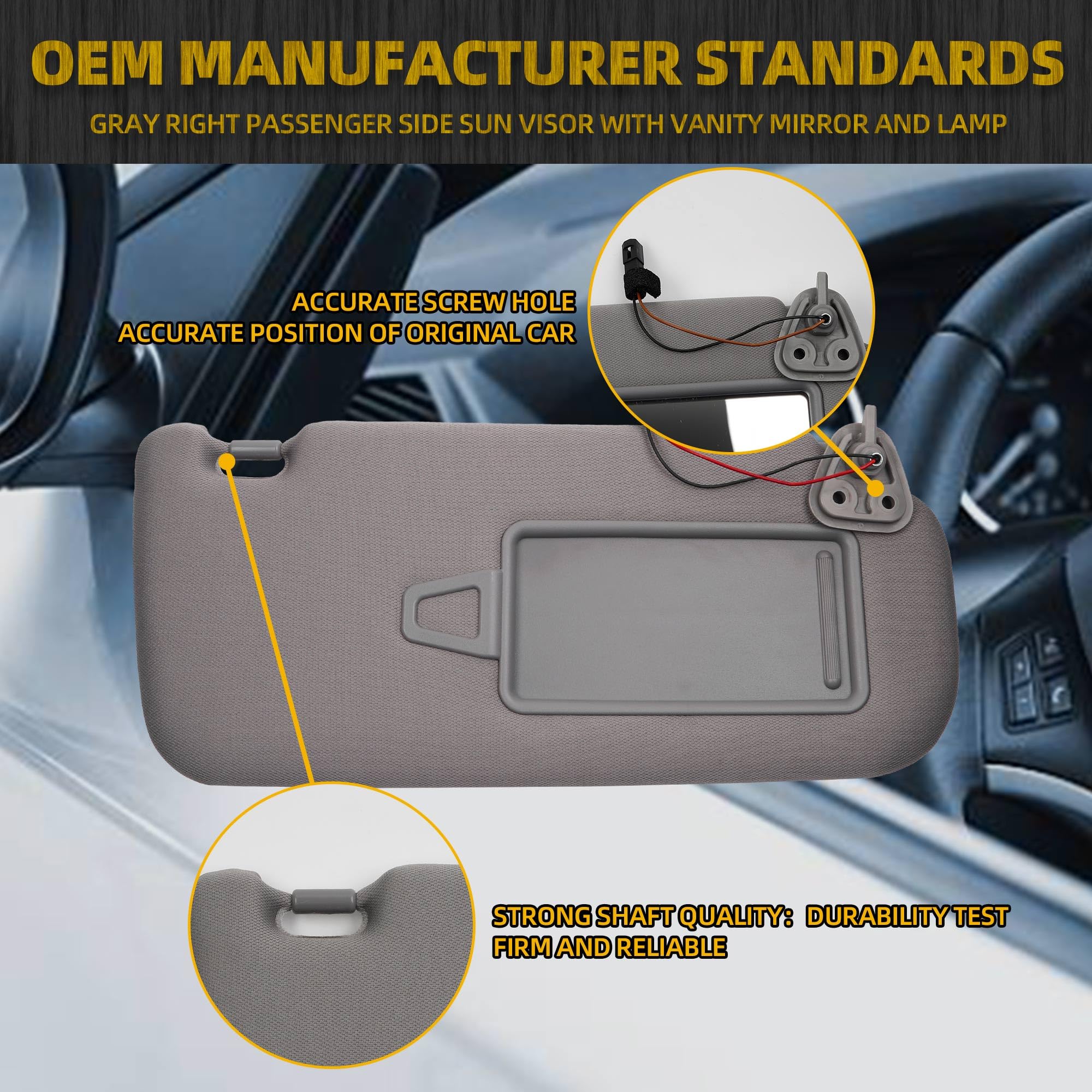 【Description】Gray Right Passenger Side Sun Visor Sun Shade with Mirror and Vanity Light