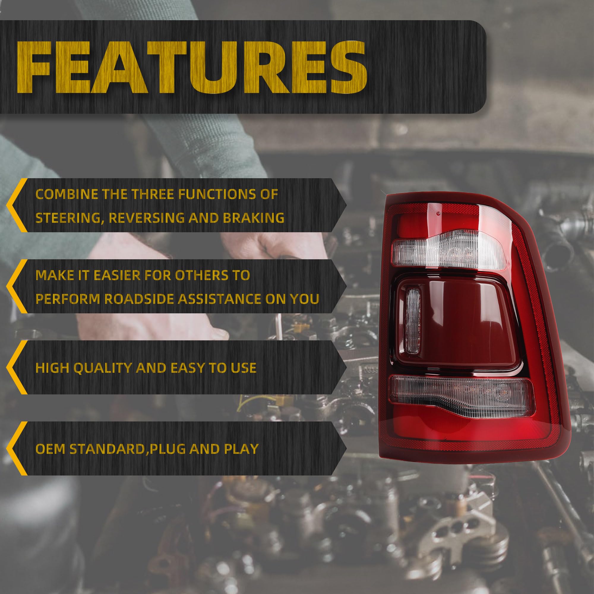 【Features】Ram 1500 Rear Lamp is OEM Standard ,Made of high quality materials, Waterproof, dustproof, anti-fog and Reliable.With bulb and wiring harness ,direct installation