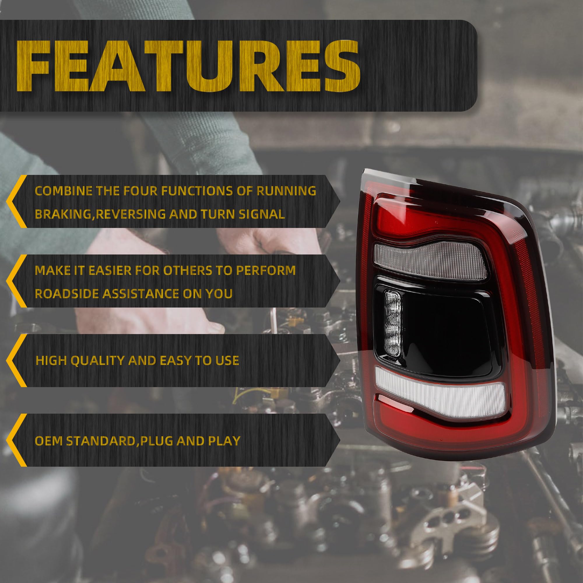 【Features】Dodge Ram 2500 3500 Rear Lamp is OEM Standard ,Made of high quality materials, Waterproof, dustproof, anti-fog and durable.With bulb and wiring harness ,direct installation