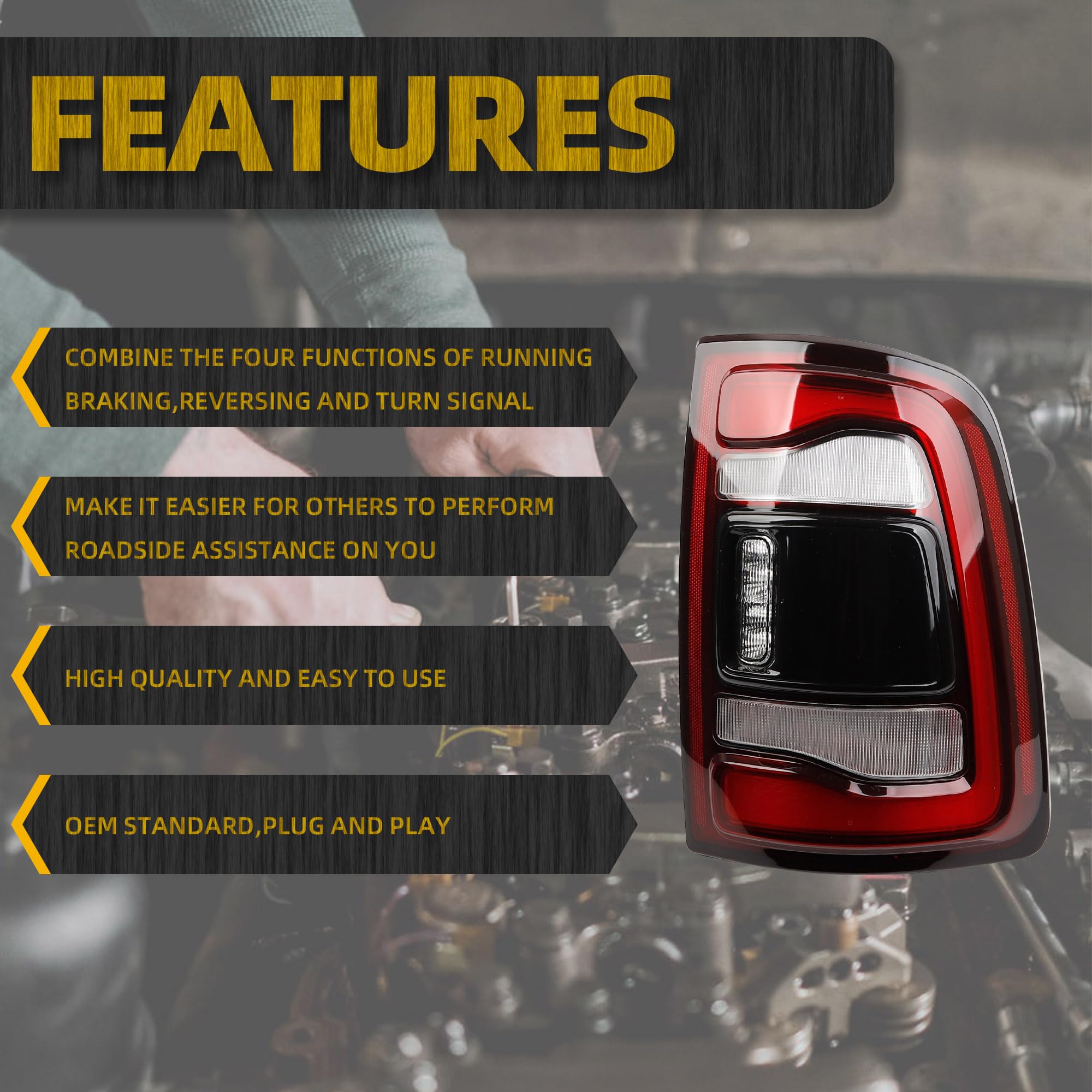 【Features】Dodge Ram 2500 3500 Rear Lamp is OEM Standard ,Made of high quality materials, Waterproof, dustproof, anti-fog.With bulb and wiring harness ,direct installation